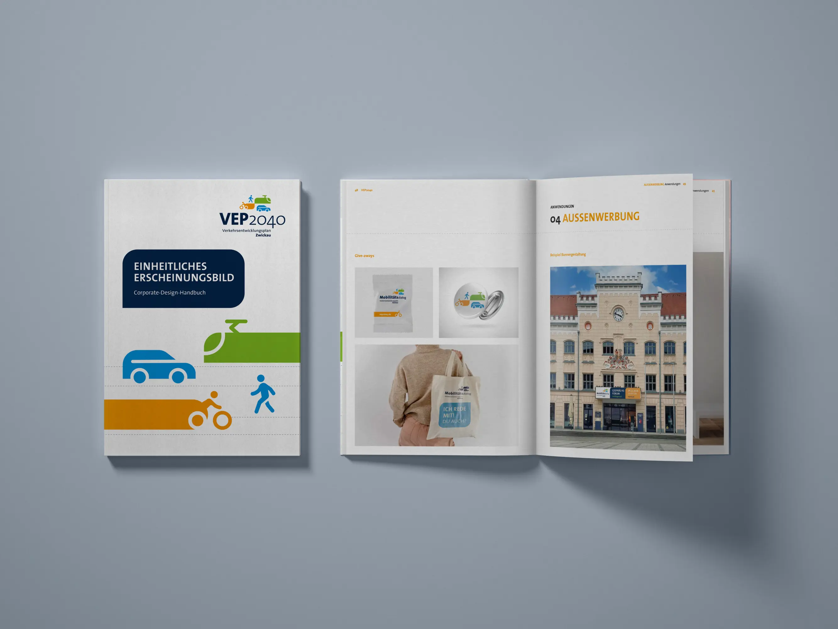 Die Stadt Zwickau geht in Sachen Mobilität neue Wege. Um bis 2040 die innerstädtische Infrastruktur sinnvoll zu entwickeln, werden Mitarbeiter der Kommune und Einwohner gleichermaßen zum Dialog eingeladen. Ein ansprechendes und umfassendes Erscheinungsbild für den VEP2040 wurde geschaffen, damit Akzeptanz und der Wunsch nach Mitwirkung innerhalb der Bürgerschaft Steigerung erfahren. Die ikonisch vereinfachte und farblich ansprechende Signetauswahl fängt alle Verkehrsteilnehmer visuell ein. Gleichzeitig erlaubt die Bildmarke eine modulare Nutzung der Icons zur Bewerbung einzelner Verkehrsbereiche für eine gezielte Ansprache.