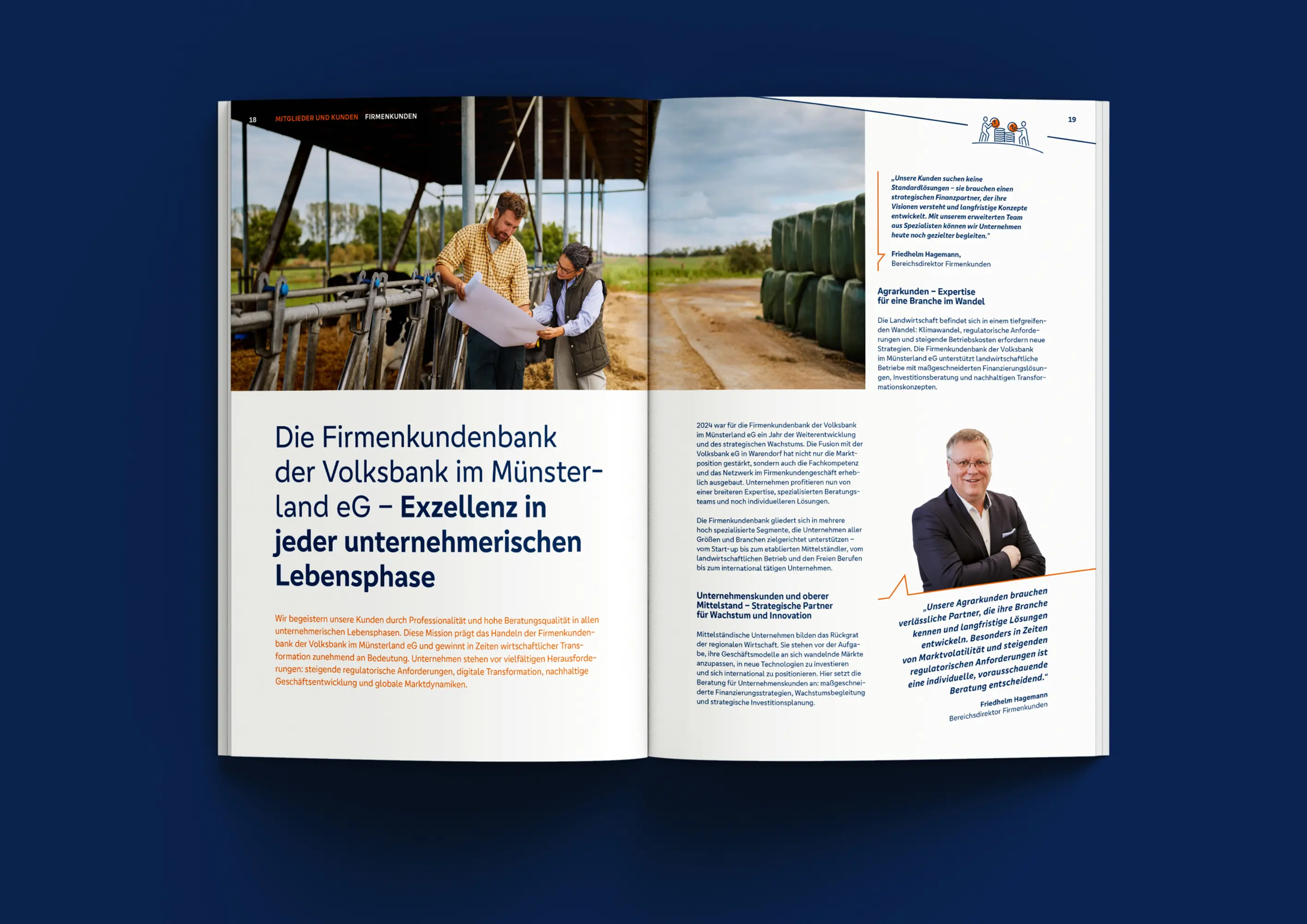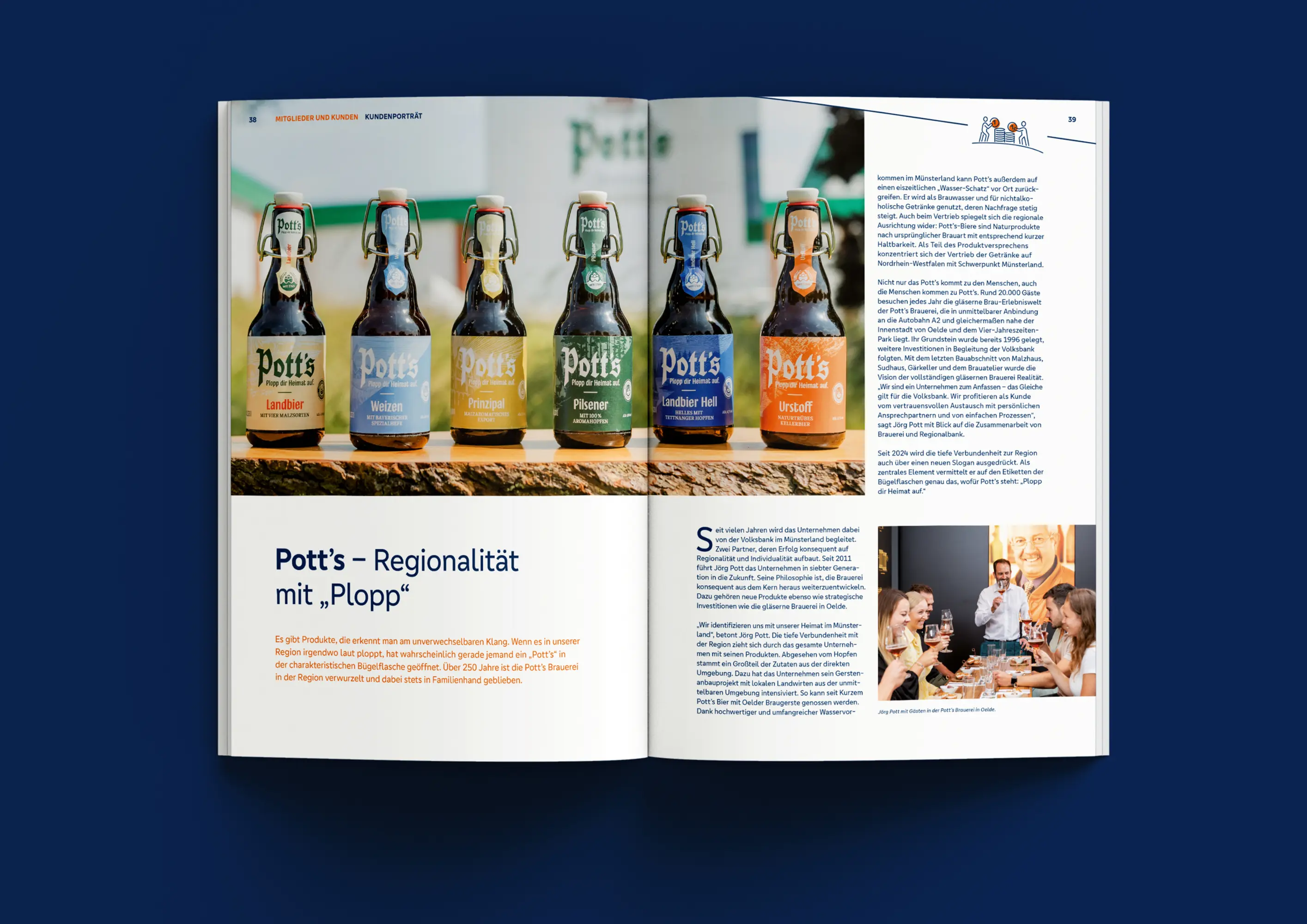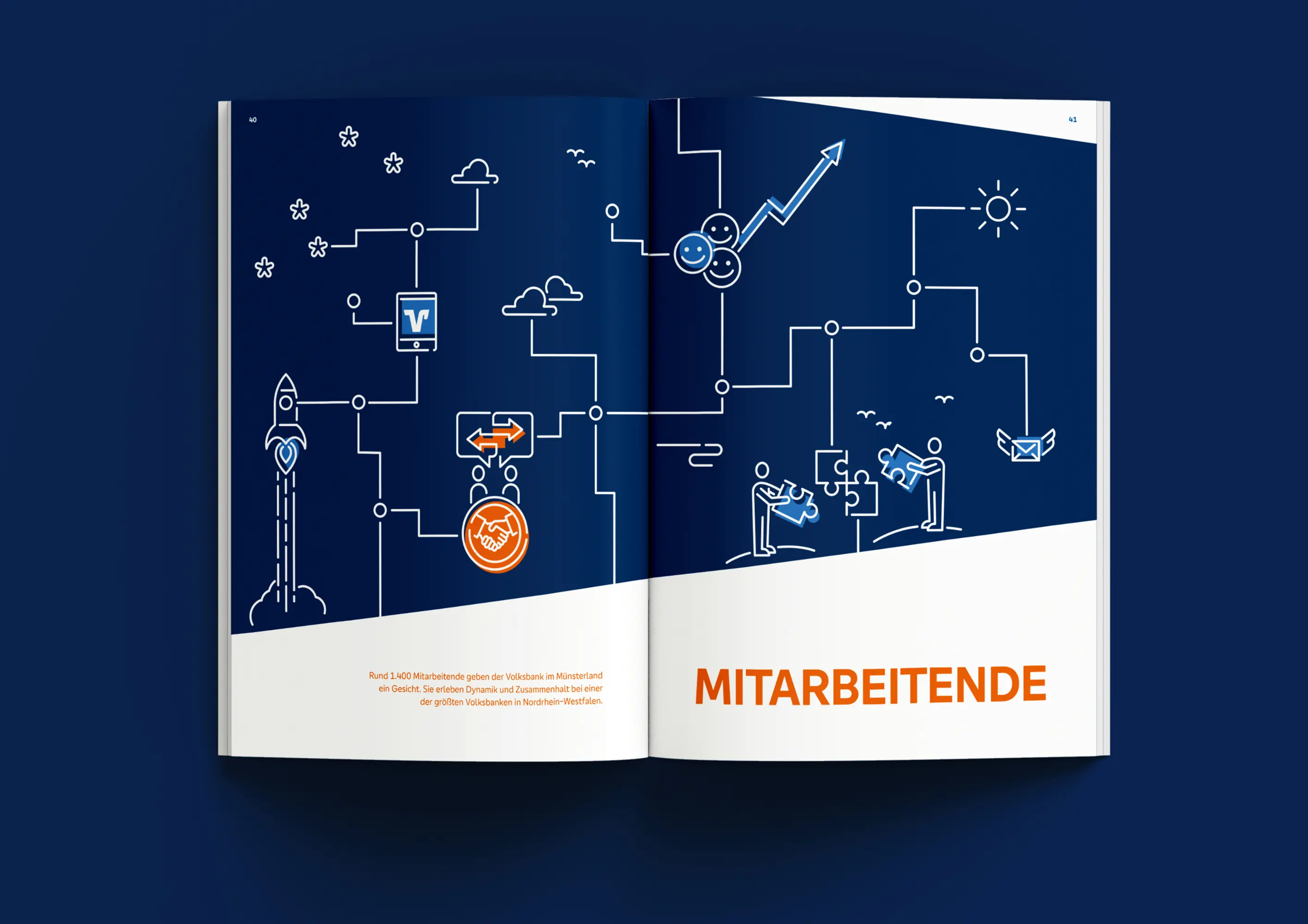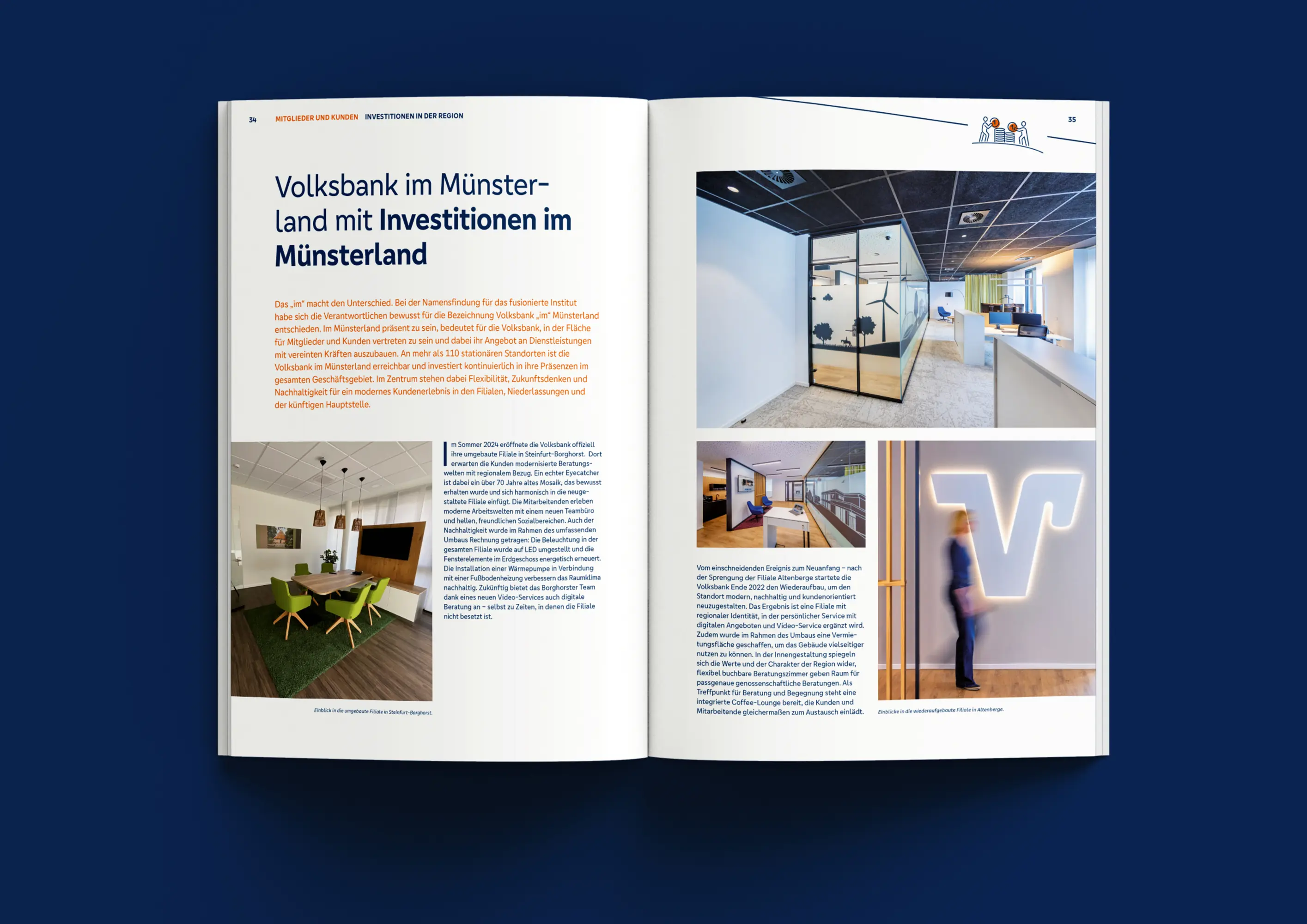 „MEHR Regionalität“ – der Jahresbericht 2024 bildet den Abschluss von vier aufeinander abgestimmten Jahresberichten, in denen je ein zentraler Unternehmenswert der Volksbank im Fokus steht. Mit eigenständigen Kapiteln/Kategorien (Mitglieder und Kunden, Mitarbeitende, Region, Bank) vermittelt er redaktionell und gestalterisch die Leistungen und Mehrwerte der fusionierten Volksbank im Münsterland für zentrale Zielgruppen. Er führt den 2022 eingeführten eigenständigen Piktogrammstil fort und berücksichtigt zugleich die gestalterischen Vorgaben des Dachverbands. Haptische Elemente wie eine mehrstufige Prägung veredeln den Printbericht zusätzlich.