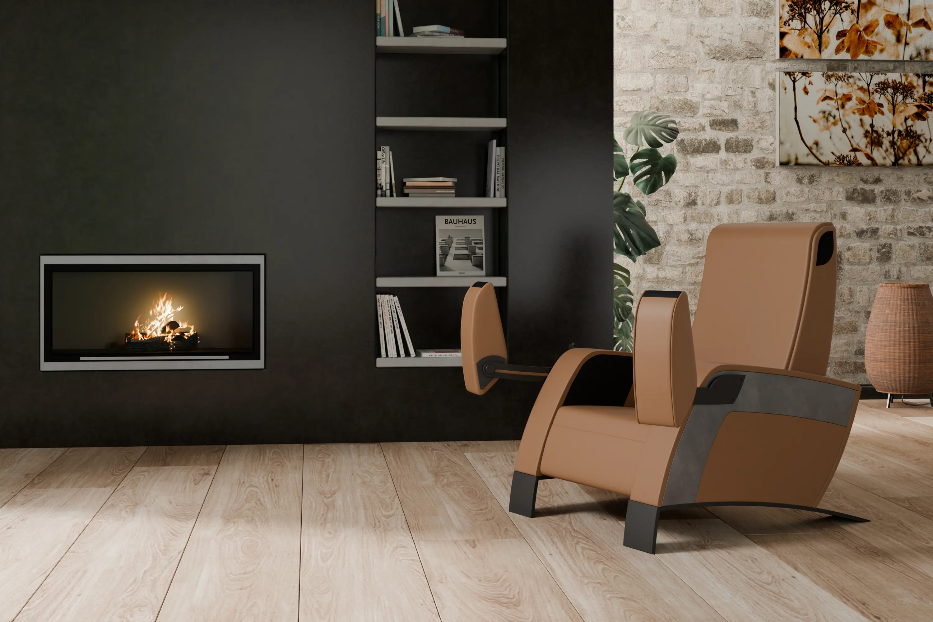 SonicThrone - ein stattlicher Sessel im ikonischem Design, der eine komplette State of the Art Hi-Fi Stereo Anlage, integriert hat. 11 Kanal DSP Verstärker neuester Technik mit 11 Wege Lautsprechersystem, bestehend aus 2 Subwoofern in den Armlehnen, 3-Wege Satelliten Lautsprecher fixiert an eleganten Tragarmen und zwei Superhochtönern in der Rückenlehne, sowie einem Bassshaker im unteren Rückenbereich. Der Vorteil des Sonicthrone liegt in der unglaublich präzisen, detailreichen und druckvollen Wiedergabe. Die Nahfeld-Anordnung ermöglicht eine raumunabhängige Aufstellung und der DSP ermöglicht gezielte Tonanpassungen bei Hörschwächen.