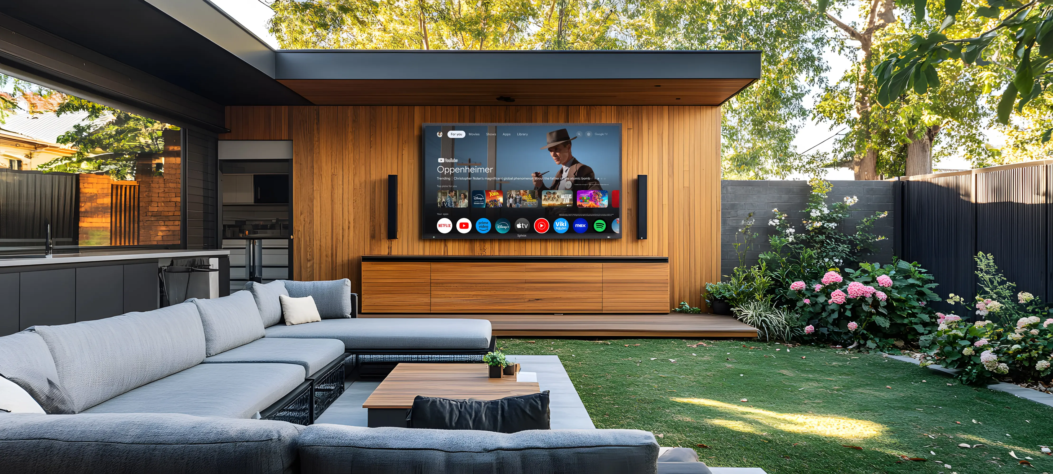Die weltweit erste 110-Zoll-Outdoor-TV mit revolutionärer Helio-QLED-Technologie, 5000-Nits-Helligkeit, IP55-Wetterschutz, kinoreifem Dolby Atmos und Dolby Vision. Entwickelt für den ganzjährigen Einsatz im Freien mit professioneller Haltbarkeit, um Temperaturen von -30 °C bis +50 °C standzuhalten. Premium‑Funktionen umfassen 4K‑Auflösung, blendfreie matte Bildschirmoberfläche, Google‑TV‑Integration, 120‑Hz‑Bildwiederholrate, extrem niedrige Latenz von <8 ms für reaktionsschnelle Leistung und einen 178°‑weiten Betrachtungswinkel für optimale Sicht aus jeder Position.