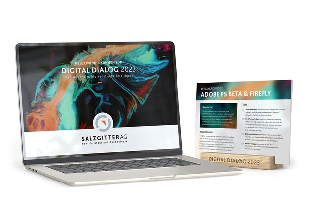 Mit dem innovativen Event-Format Digital Dialog haben wir weltweit der Salzgitter AG einen Rahmen für die fachliche Weiterentwicklung im KI-Bereich eröffnet. Alle Teilnehmenden bekamen die Möglichkeit, Tools mit künstlichen Intelligenzen im KI-Playground auszuprobieren und an einem gemeinsamen Austausch teilzunehmen. Das Design wurde, um Parallelen zur KI zu schaffen, fluide angelegt und veränderte sich in den einzelnen Medien passend zu den Eingriffen der Event-Teilnehmern in Optik und in der Gesamterscheinung. Die Neon-Farben unterstützen den modernen Look und haben sich stark bei den Teilnehmenden eingeprägt.