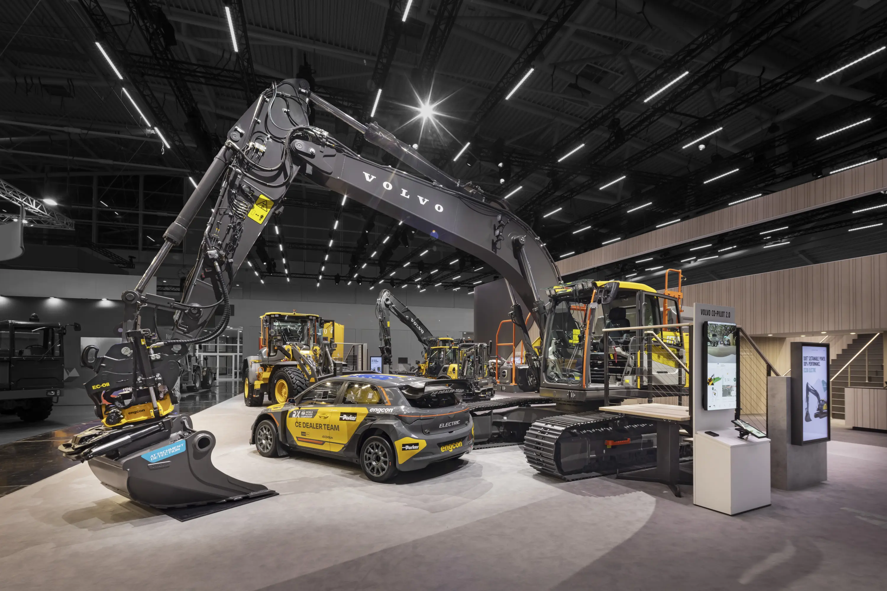 Die Idee: Ein Messestand, bei dem das Licht nicht dominiert, sondern gestaltet. Mit klaren Lichtlinien angelehnt an die Architektur des Volvo Construction Equipment Messestandes, welche eine elegante Lamellenstruktur ergeben, die Akzentbeleuchtung in den Hintergrund rückt und dabei eine Atmosphäre schafft, die die ausgestellten Baumaschinen perfekt in Szene setzt - ohne aufdringlich zu wirken.