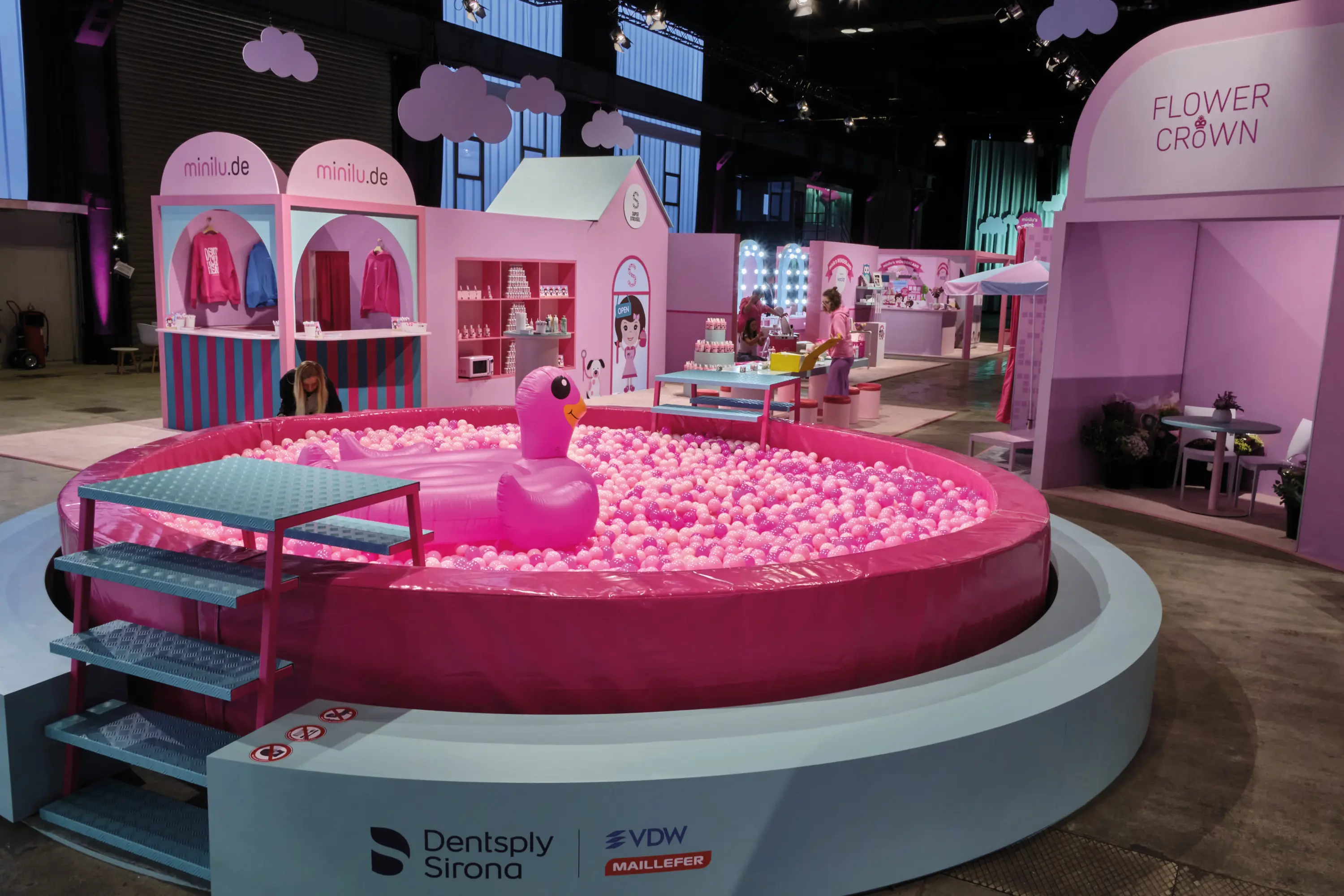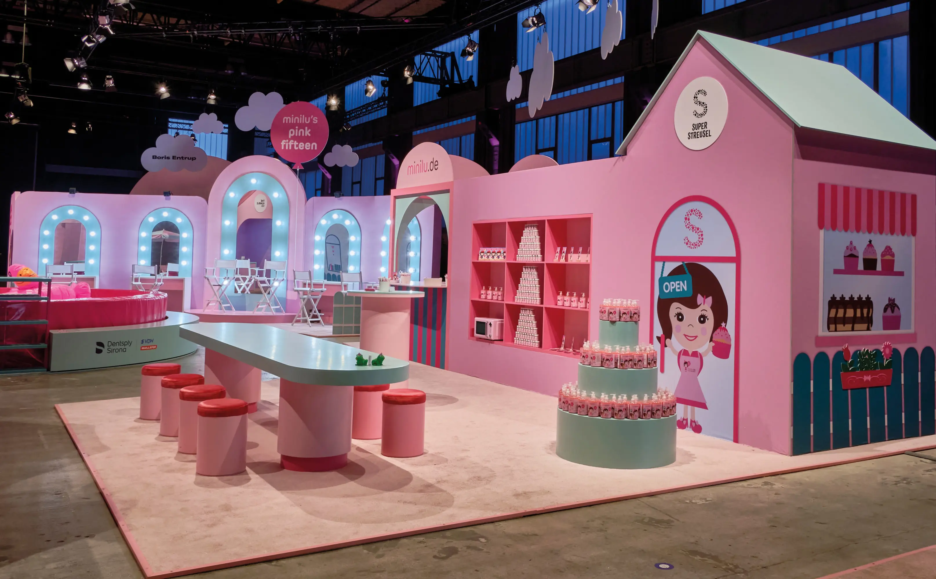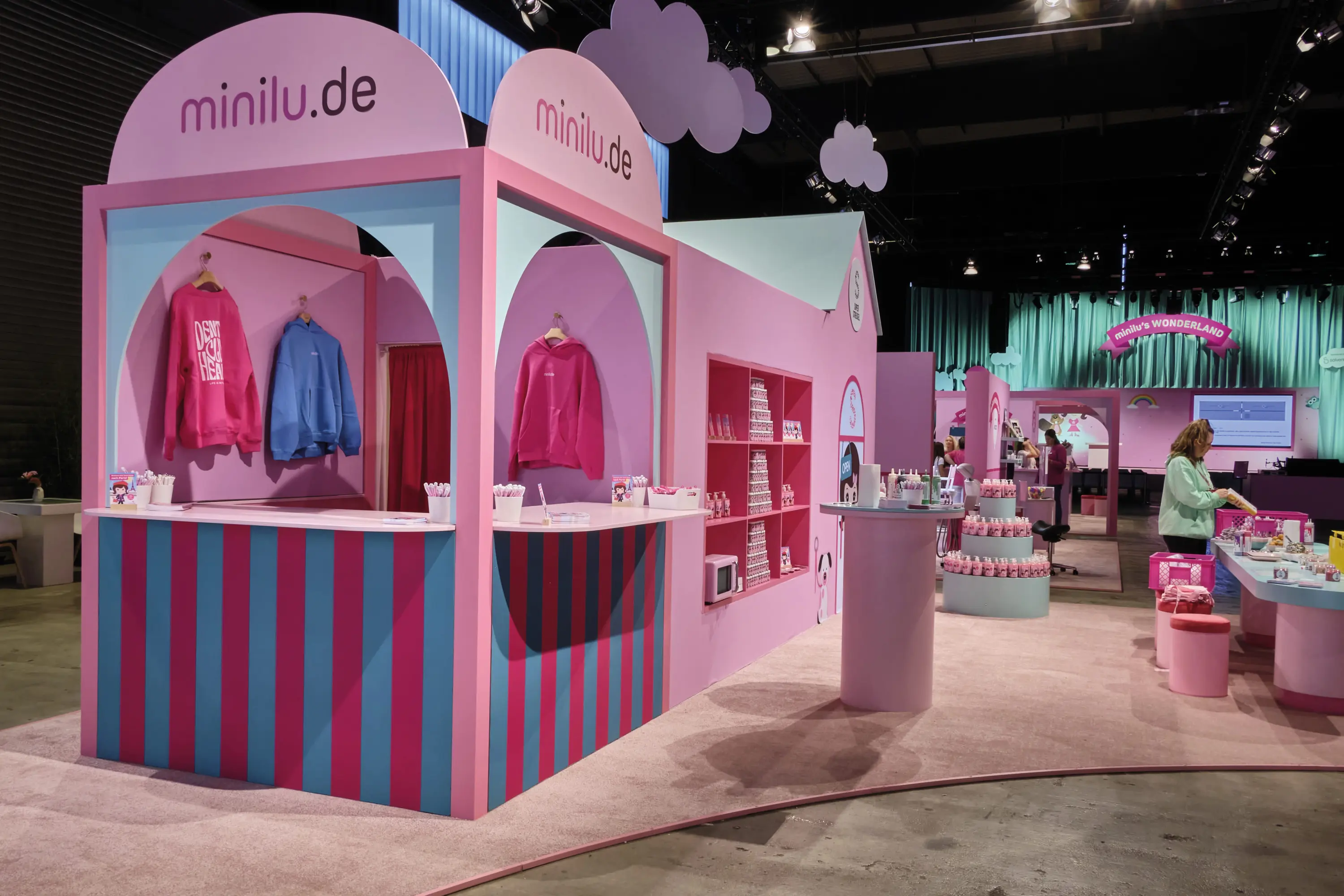 Zum 15-jährigen Jubiläum entwickelte minilu mit minilu’s Wonderland ein temporäres Raumformat, das Fortbildung, Markeninszenierung und Unterhaltung erstmals in einer szenografischen Erlebniswelt zusammenführte. In einer industriellen Eventlocation entstand eine pinkfarbene Markenwelt, die sich gezielt an Zahnmedizinische Fachangestellte richtete – mit praxisnahen Workshops, Live-Demos und Showformaten. Die escapism-orientierte, funktional gegliederte Architektur übersetzte die Markenidentität konsequent in den Raum – spielerisch, nahbar, unverwechselbar. Und brach dabei bewusst mit den Konventionen einer sonst sachlich geprägten Branche.