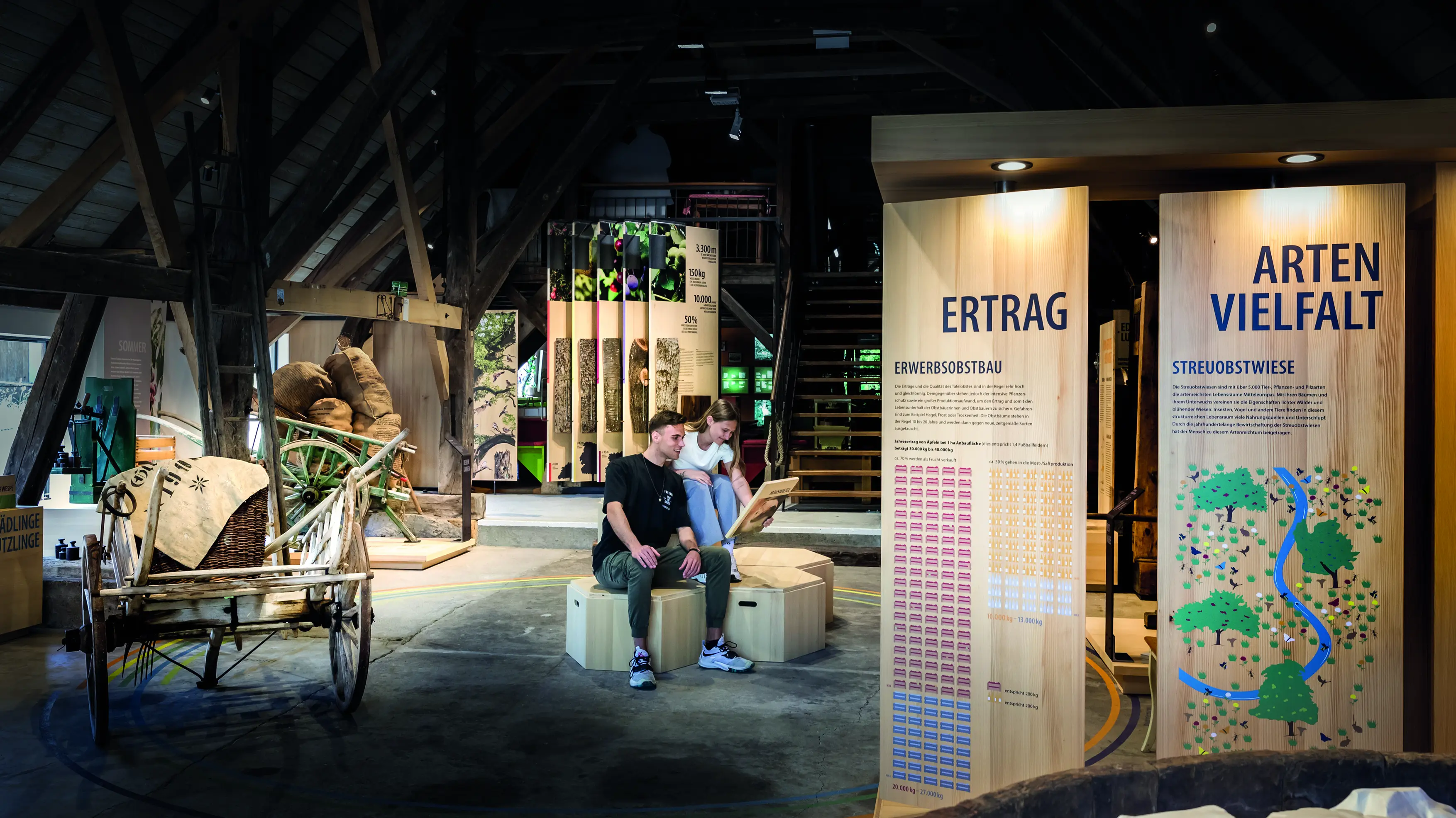 Das von VISUELL konzipierte, gestaltete und realisierte Obstbaumuseum Glems präsentiert auf 150 m² eine interaktive Ausstellung unter dem Motto: „Man schützt, was man kennt“. Sie macht das immaterielle Kulturerbe des Streuobstanbaus im Biosphärengebiet Schwäbische Alb barrierefrei erlebbar. Analoge und digitale Medienstationen, die aus natürlichen Materialien gefertigt wurden, zeigen den Jahreszyklus des Obstbaus und die damit verbundenen Berufe. Ein pädagogisches Highlight ist das analoge Begleitspiel mit der Biene Glemmy.