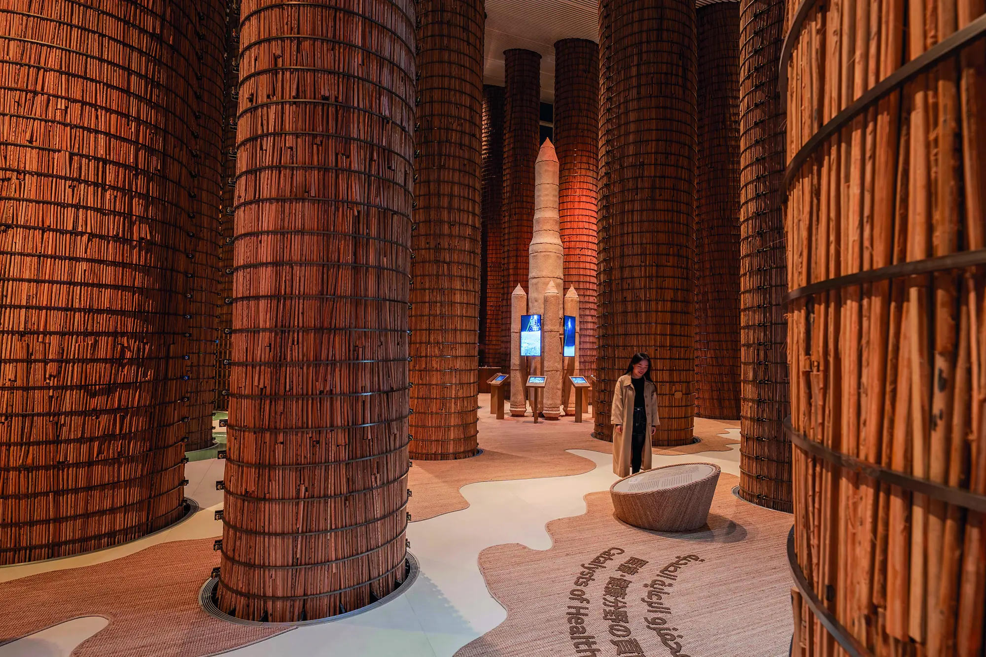 Der Pavillon der VAE auf der Expo 2025 in Osaka lädt zu einer immersiven, multisensorischen Reise ein, in der kulturelles Erbe und Innovation Hand in Hand gehen. Unter dem Leitthema "Earth to Ether" erzählt die Ausstellung die Geschichte eines Landes, das tief mit seiner Natur verbunden ist und zugleich große Schritte in Raumfahrt, Gesundheitswesen und Nachhaltigkeit unternimmt. Im Zentrum steht die Dattelpalme – Symbol für Widerstandskraft und nachhaltige Ressourcen – integriert in Szenografie, Leitsystem und Möblierung. Interaktive Installationen und Themenbereiche schaffen ein einzigartiges Zusammenspiel von Tradition und Technologie.