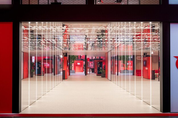 Dieser Messestand beeindruckt durch seine dynamische Gestaltung, die Kommunikation und Austausch in den Mittelpunkt rückt. Die klar strukturierten Bereiche schaffen eine lebendige und urbane Atmosphäre, die den Besucher*innen ein interaktives und einladendes Erlebnis bietet. »Vodafone City« setzt Maßstäbe im Messebau durch seine gelungene Verbindung von Funktionalität und Designästhetik.