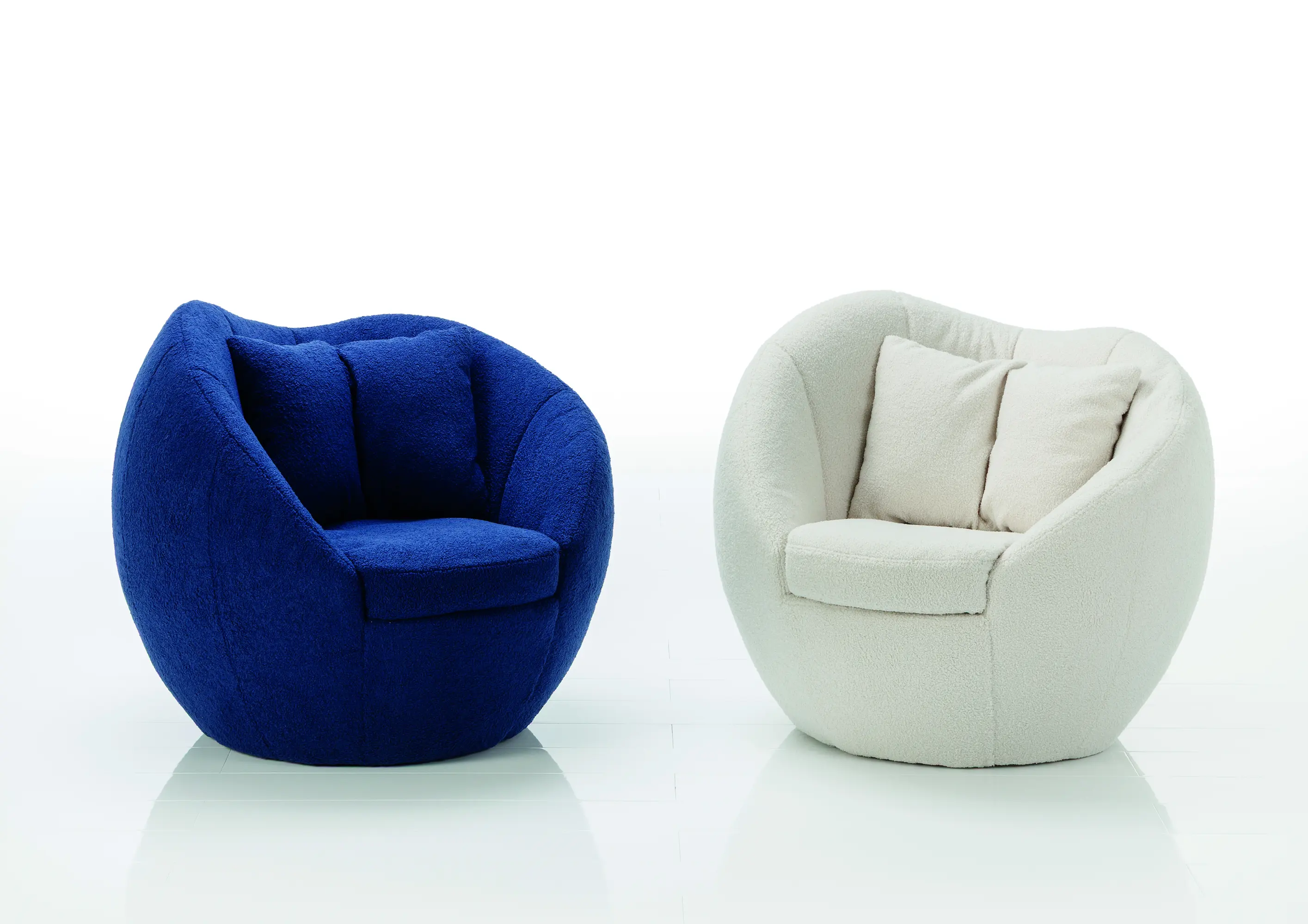 Mit organischer Opulenz evoziert azure den Glanz und die Fülle mediterranen Lebens. Die geschwungene Form des großzügigen Sessels erinnert an Muscheln, Wellen oder gerundete, geöffnete Früchte. Ein überschwängliches Design, das Glück, Heiterkeit und eine Bewusstheit für das Schöne, das uns umgibt, verbindet. Rundum gepolstert und bezogen und mit einer Drehbasis, ist azure sehr komfortabel. Der wellenförmige Rücken lädt zum Zurücklehnen ein. Ein Hocker wird angeboten. Die Bezüge sind abziehbar.