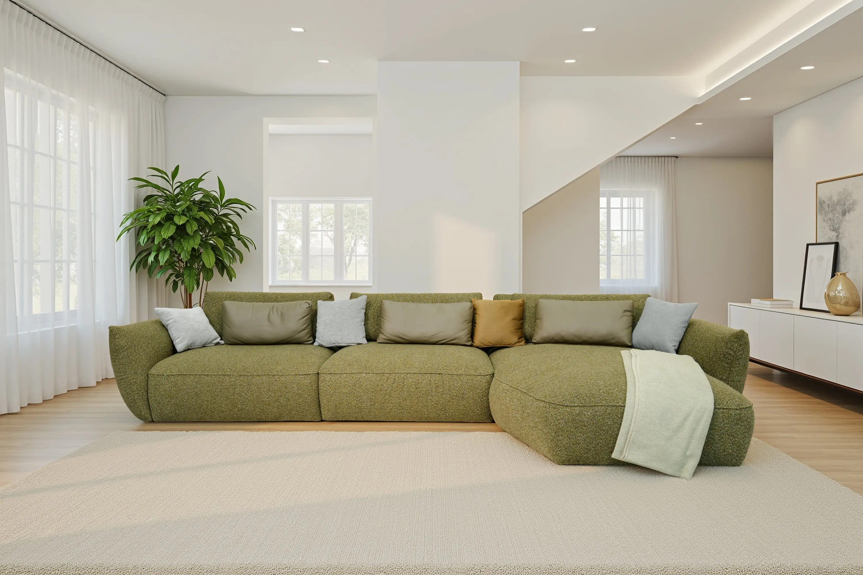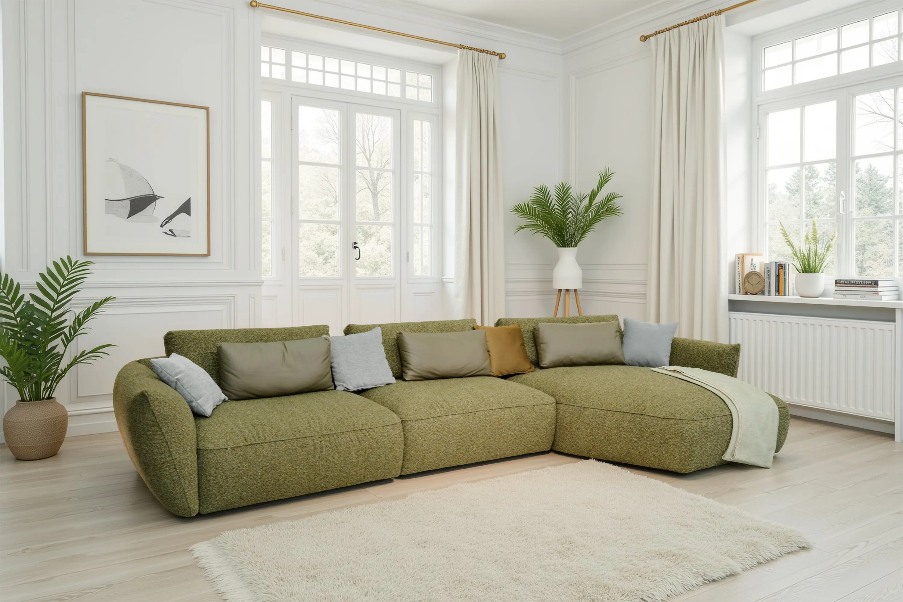 Das Sofa Coperta verkörpert italienische Lässigkeit mit charmant-kissiger Optik. Der auf Komfort optimierte Polsteraufbau aus mehrschichtigem Schaumstoff, segmentierter Watte und Nosag-Unterfederung gewährleistet ein hochwertiges Sitzgefühl bei langlebiger Formstabilität. Leicht geneigte Armlehnen und weiche Rückenkissen mit Anti-Kippfunktion unterstreichen den einladenden Charakter. Die asymmetrische Récamiere verleiht dem Sofa Dynamik und feine Nahtdetails, sowie Keder unterstreichen die europäische Handwerkskunst. Ein breites Typenprogramm von großzügigen L-Formen bis kompakten Varianten ermöglicht eine vielseitige Gestaltung.