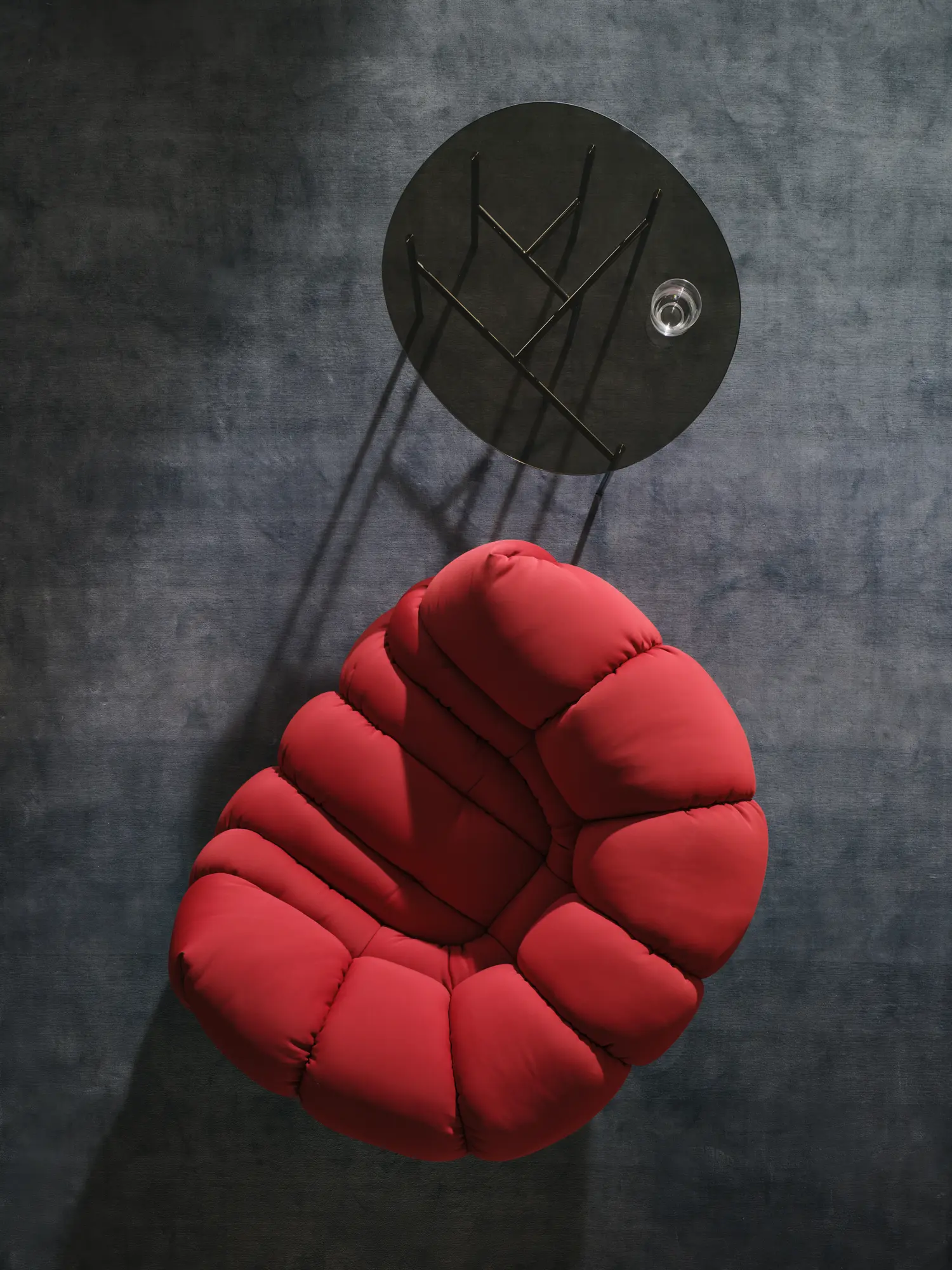 CUDDLE basiert auf Innovation und Leidenschaft. Inspiriert von der übergroßen Pufferjacke, übersetzt die kokonartige Silhouette und die Soft-Pad-Konstruktion die Kleidungsherstellung in Möbel. Nach unzähligen Experimenten wurde mit vier Lagen Schaumstoff und Daunen die Balance aus Weichheit und Halt erreicht, die dem Körper einsinken und sich dennoch hochgehoben fühlen lässt. Skulptural und doch einladend und lebendig spiegelt CUDDLE die menschenzentrierte Designvision von HC28 Maison wider. Mehr als ein Möbelstück ist es ein handgefertigter Rückzugsort – ein Ort stilvoller Entspannung, ob als Statement-Stück oder ruhige Ecke zum Entspannen.
