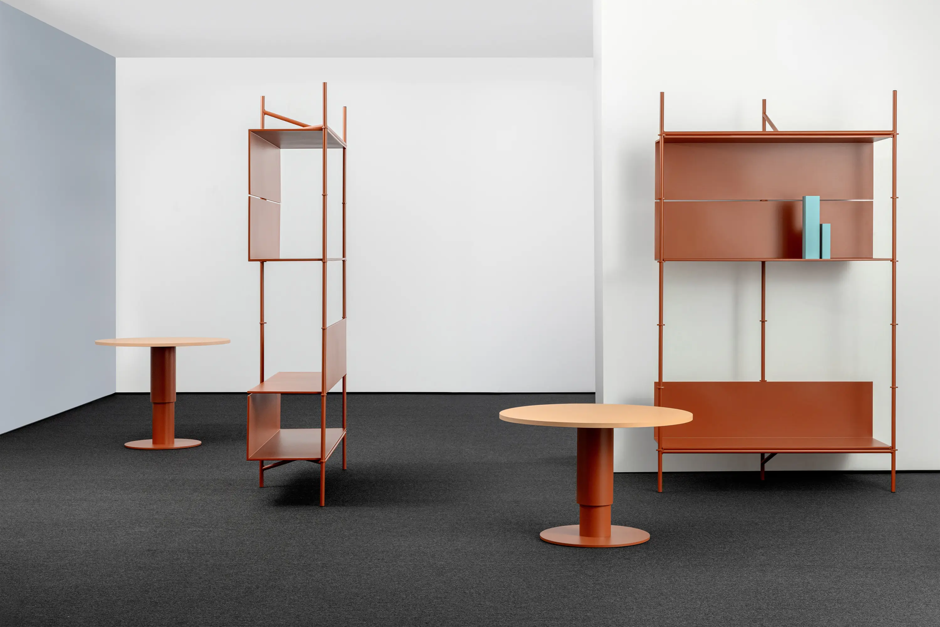 Das flexible Regalsystem Elle und Elle Consolle zeichnen sich durch eine Metallstruktur aus, die aus drei selbsttragenden vertikalen Elementen besteht, die linear nebeneinander gestellt werden können. Dank seiner L-förmigen Metallböden bietet dieses Regal unendliche Möglichkeiten zur individuellen Gestaltung: Die Böden können regelmäßig angeordnet oder umgedreht werden, um Räume mit doppelter Höhe zu schaffen, die sich so an unterschiedliche Bedürfnisse anpassen. Erhältlich in verschiedenen Farben, von der monochromen Version bis hin zu individuellen Kombinationen, passt sich Elle mühelos an jeden Einrichtungsstil an.