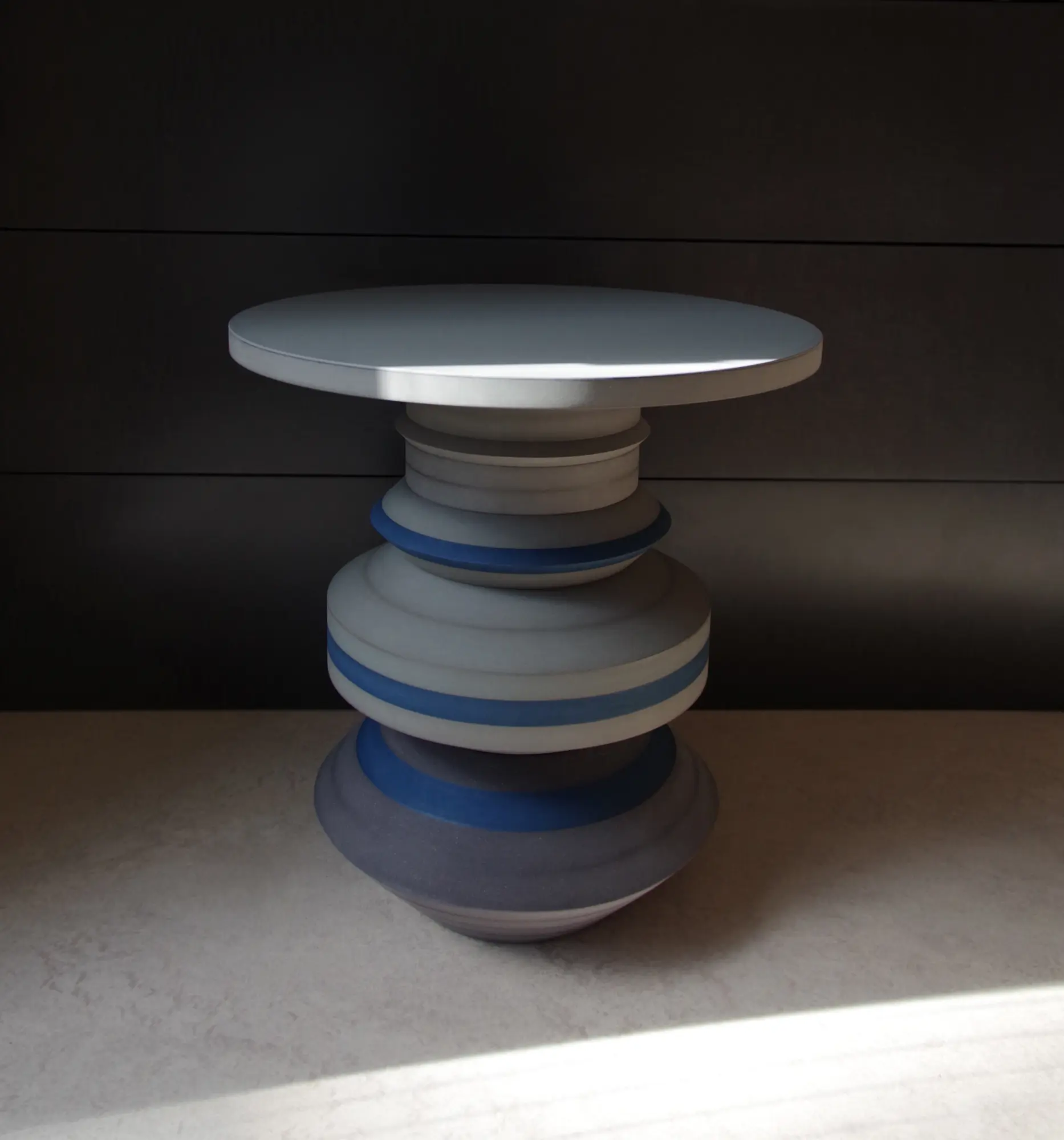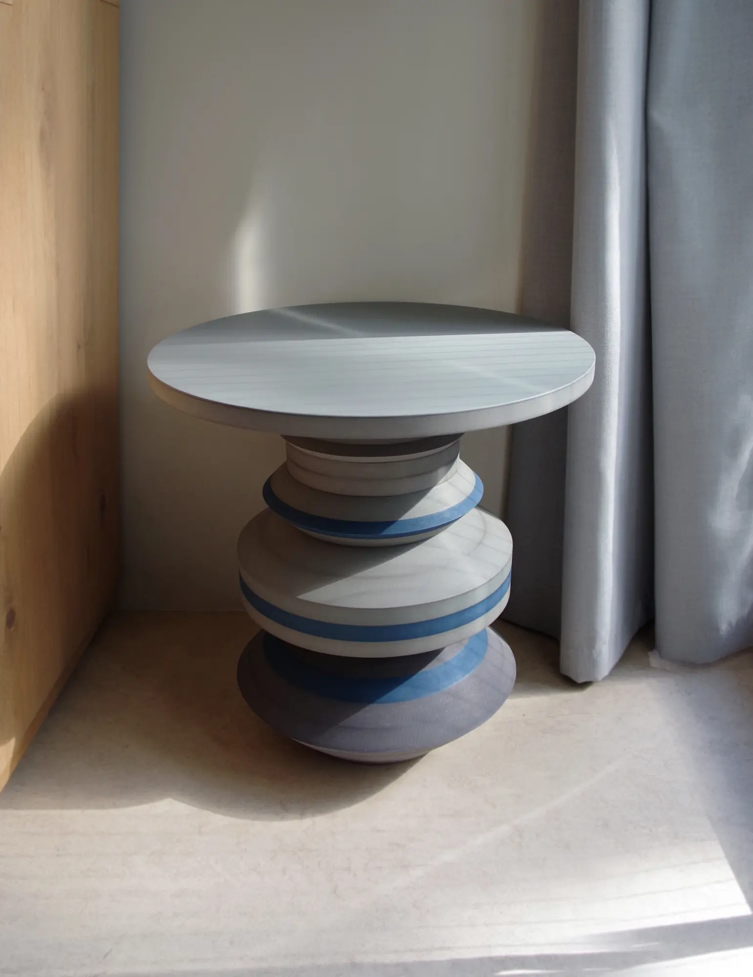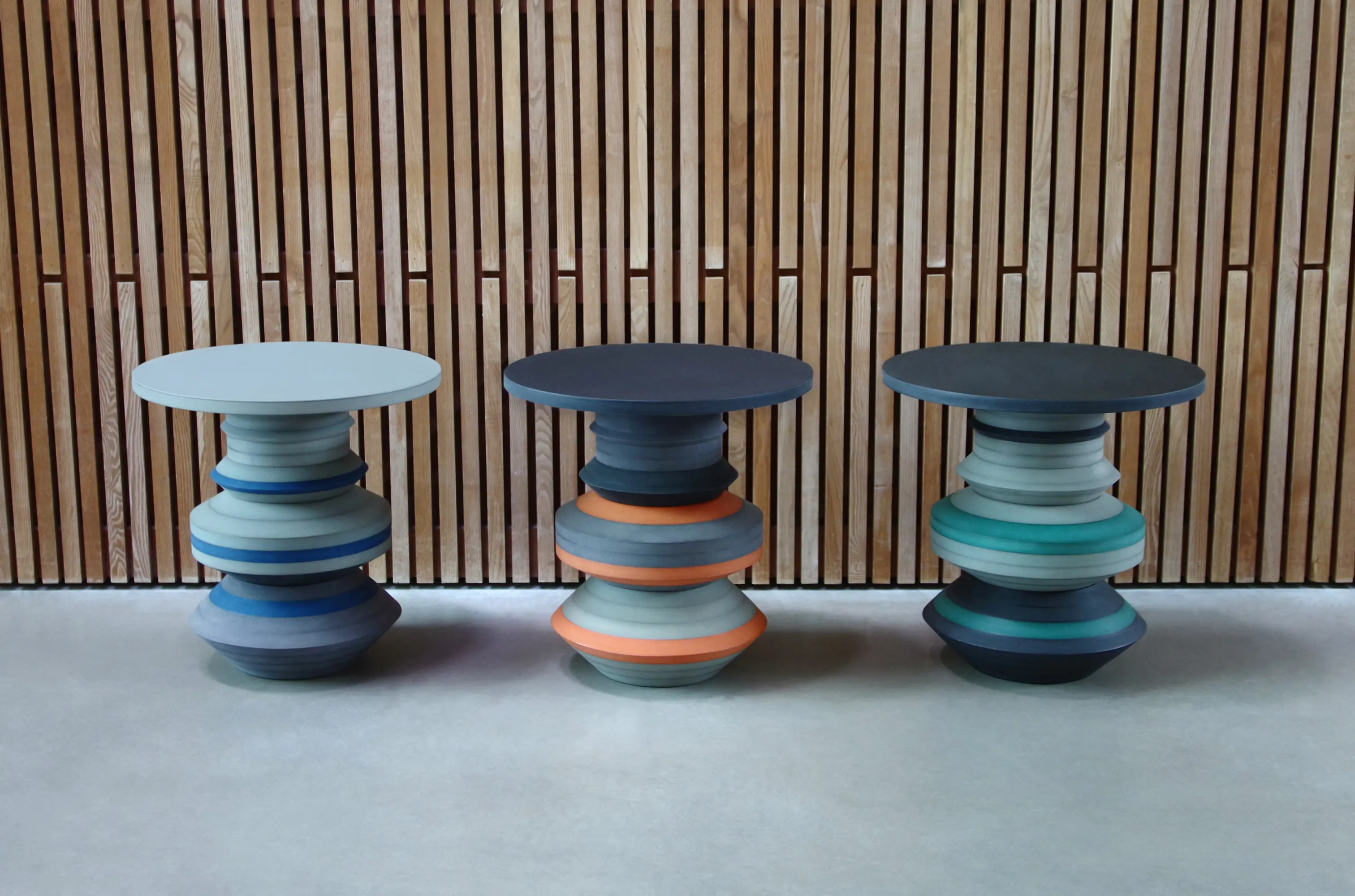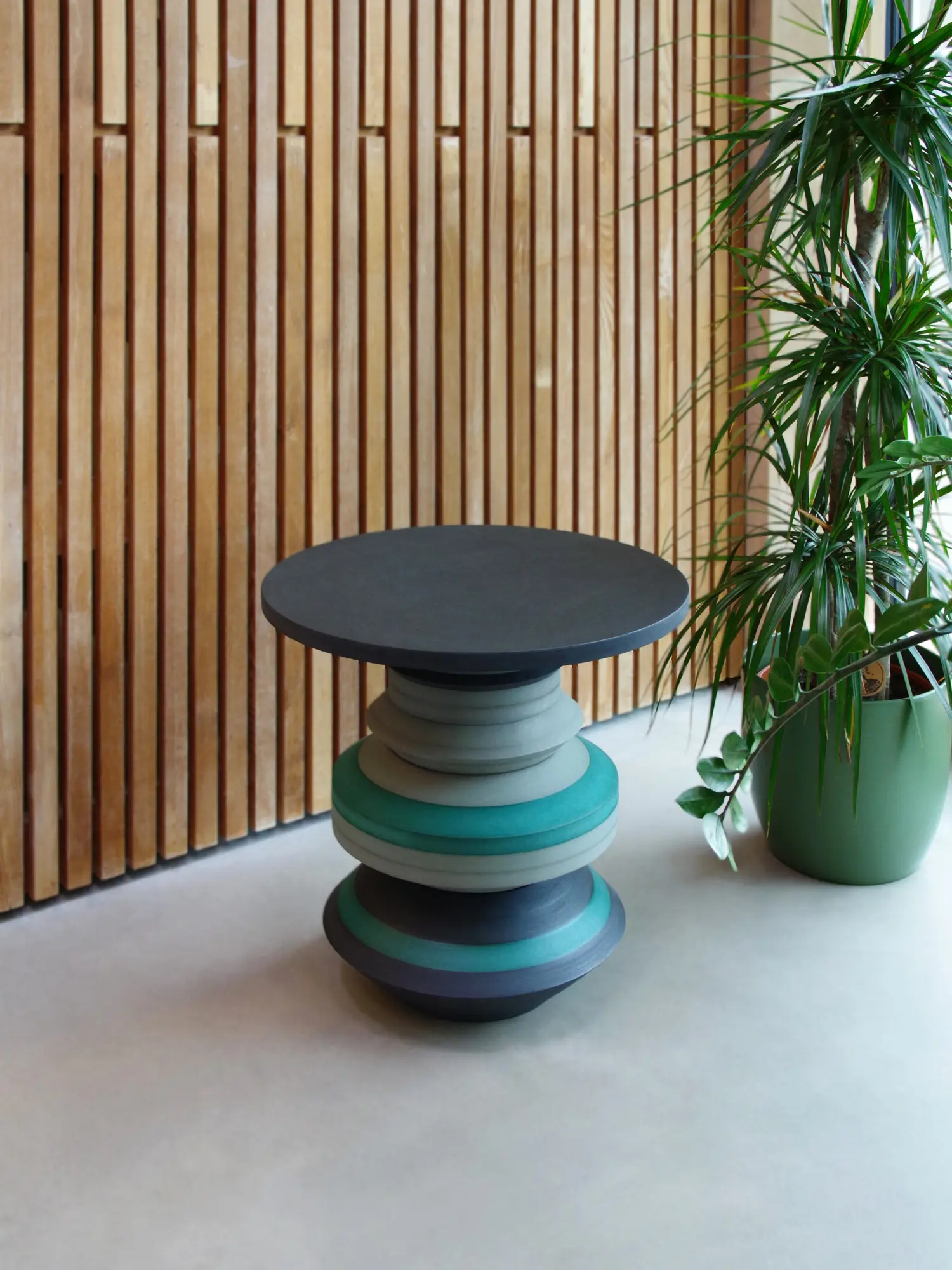 HueHoop ist ein Beistelltisch, der Nachhaltigkeit, Verspieltheit und Funktionalität vereint und am Ende seiner Lebensdauer keinen schädlichen Abfall hinterlässt. Die Tischplatte ist mit Linoleum belegt, das ihr natürliches Aussehen, ihre Wärme und ihren Charakter bewahrt, ohne schädliche Stoffe abzugeben. Das Design basiert auf einem durchgefärbten, nachhaltigen Verbundmaterial aus recycelten Holzfasern mit natürlichen Harzen und Pigmenten, das auch nach der Verarbeitung seine Qualität behält. Der Name „HueHoop“ verweist auf die vielfältigen Farben der Platten („Hue“) und die markante runde Form („Hoop“).