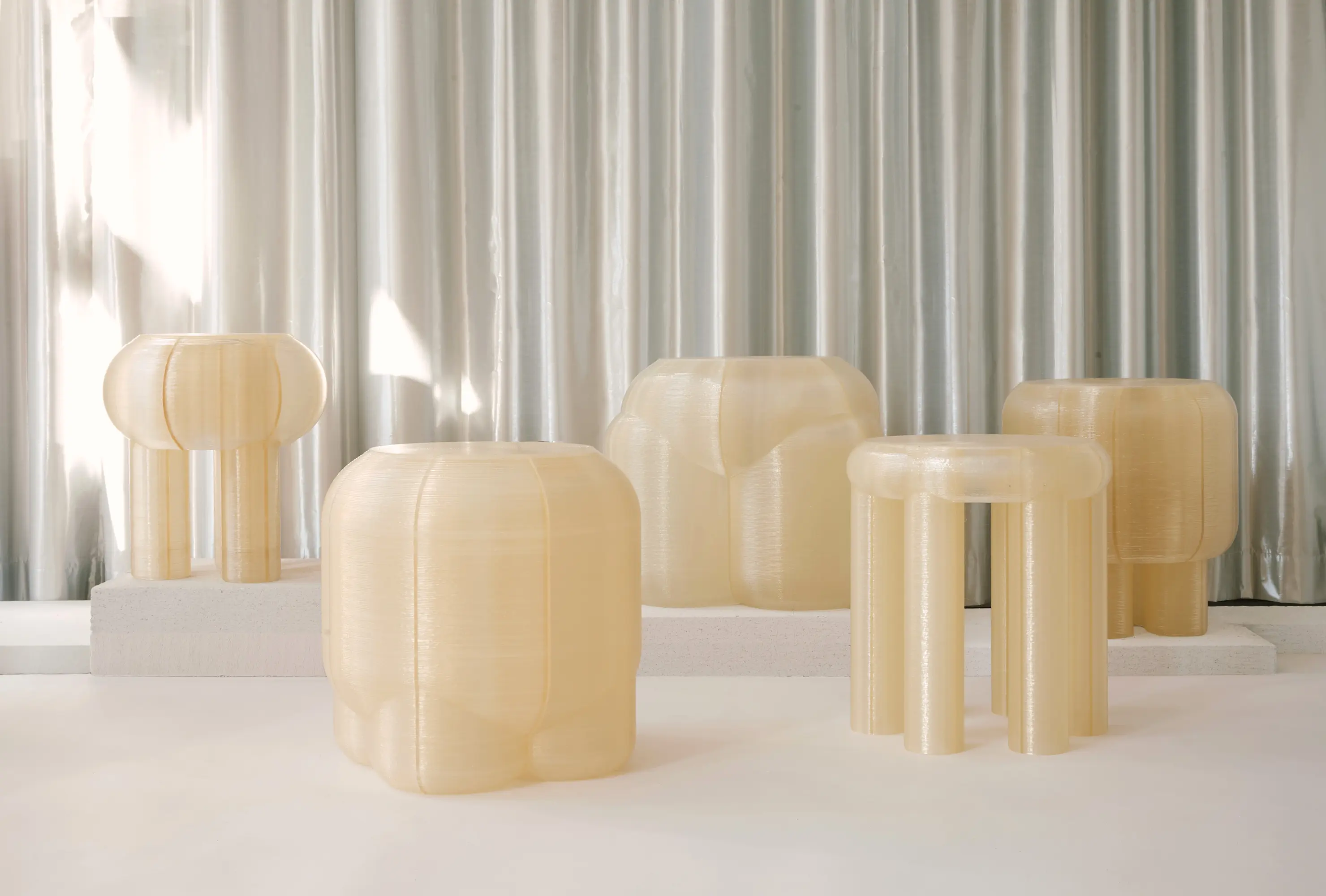In unseren Objekten trifft der spielerische Umgang mit Gestaltung auf Computation und das Potenzial der Generierung komplexer Geometrien. Gegründet von Architekten und Ingenieuren, nutzt Jelly 3D-Drucktechnologie, um Formideen zu erkunden. Unsere Objekte sind langlebig und laden dazu ein, berührt zu werden. Jeder Entwurf ist eine spielerische Abstraktion vertrauter Möbeltypen und Teil eines vielfältigen Repertoires an Formen und Assoziationen – von körperlichen Konturen bis hin zu organischen Strukturen. Jellys Objekte besitzen eine eigene Formensprache, bereichert von der Ästhetik ihrer inneren Architektur.