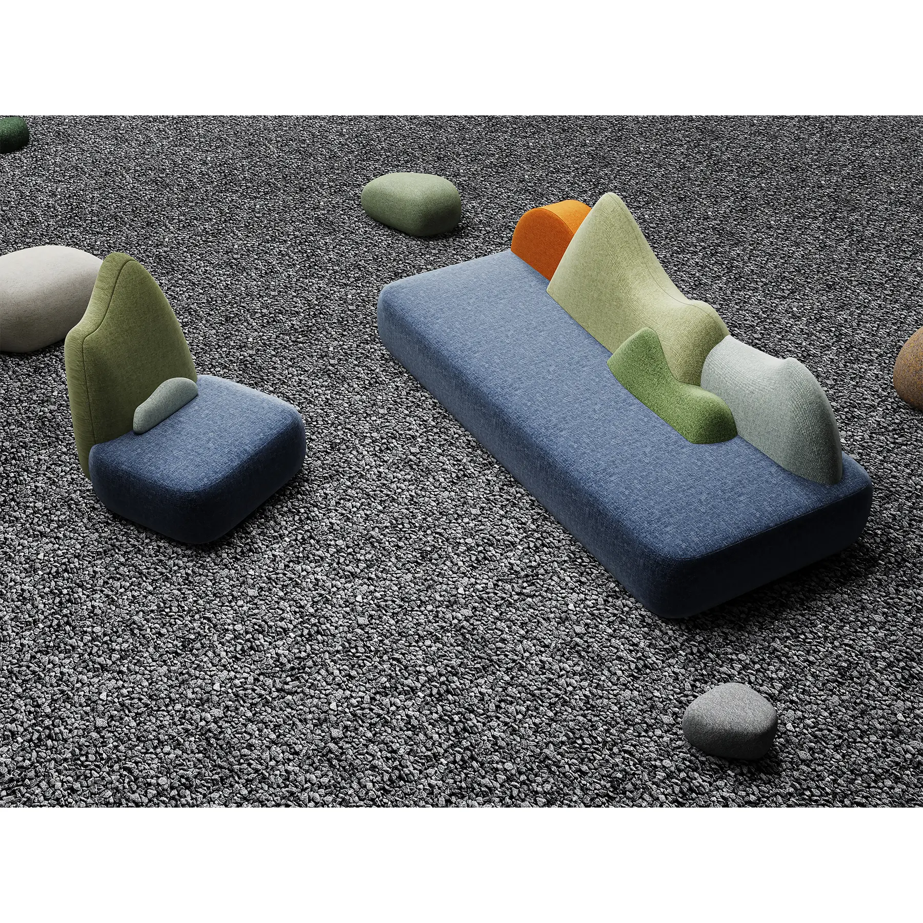 Mountainscape ist eine Möbelkollektion, inspiriert von der ikonischen chinesischen Landschaftsmalerei A Panorama of Rivers and Mountains. Die Kollektion verwandelt poetische Tuschlandschaften in greifbare Formen. Gewellte Rückenlehnen imitieren geschichtete Berggipfel in verschiedenen Stofftönen, während tiefblaue Sitze fließende Flüsse darstellen. Wie eine sich entfaltende Bildrolle verbindet das Design Funktion und Kontemplation und lädt die Nutzer ein, „im Landschaftsbild zu verweilen“.