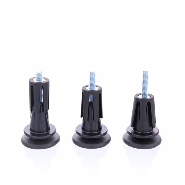 Das Problem: Herkömmliche Gelenkgleiter-Zapfen passen auf nur ein Rohrinnenmaß. Der neuentwickelte Gelenkgleiter aus dem QuickClick®-System passt sich flexibel einem Rohrinnendurchmesser von 12–14 mm an und überbrückt alle Zwischenmaße. Dank tauschbarer Gleitaufsätze kann der „EXPANDER“ auf den verschiedensten Boden-Oberflächen eingesetzt werden. Der Gelenkgleiter besteht aus zwei Teilen: Einer Universal-Lamelle, die im Rohr platziert wird und sich im Inneren spreizt und einem Gelenkgleiterköpfchen, das optional mit kompatiblen „Smart“-Gleitaufsätzen bestückt werden kann. Via Inbusschlüssel wird die Lamelle fest im Rohrinneren verspannt.