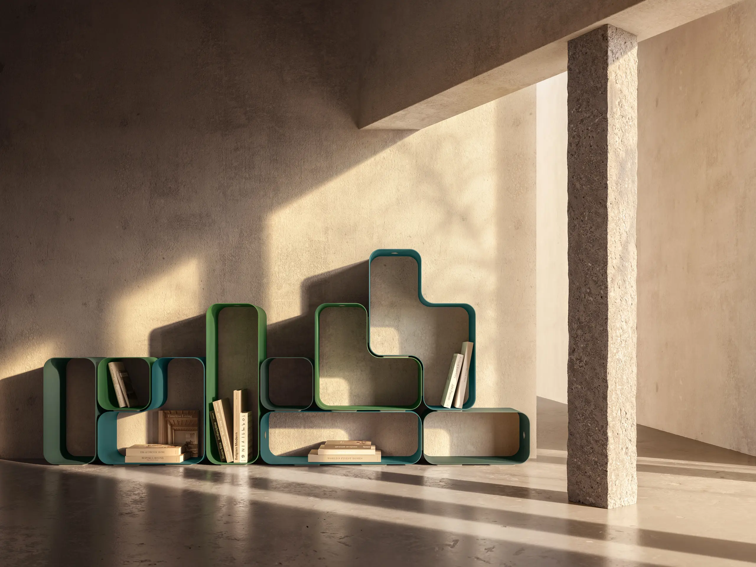 Rebus ist ein frei modulares Bücherregalsystem. Für eine optimale Stabilität empfiehlt es sich, auf jeder Seite des Einzelmoduls immer eine Magnetplatte anzubringen. Wir empfehlen, die Höhe von 5 Modulen niemals zu überschreiten.