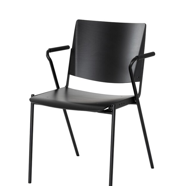 Der Stuhl stellt eine moderne Neuinterpretation des traditionellen Objektstuhls dar und bietet vielfältige Gestaltungsmöglichkeiten. Durch bewährte Verkettungselemente kann er sicher gestapelt werden, was ihn ideal für flexible Raumkonzepte macht. Die harmonische Integration von Sitz- und Rückengarnitur in die Gestellstruktur unterstreicht seine zurückhaltende Ästhetik.