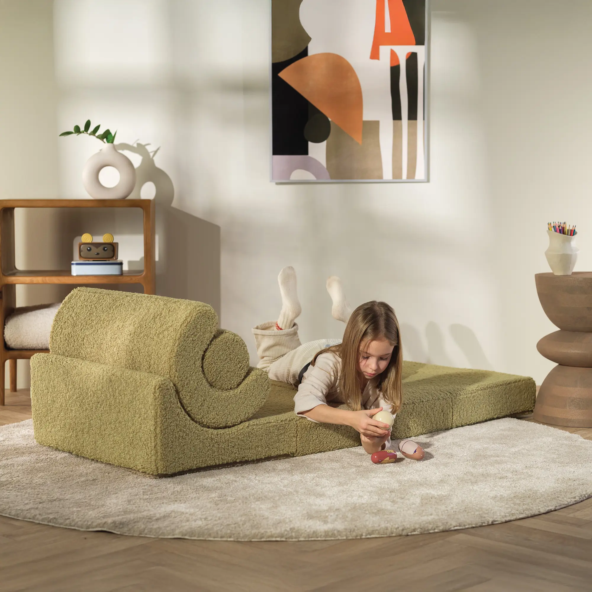 Flipster ist ein von der Bauhaus-Ästhetik inspirierter, multifunktionaler, modularer Polstersessel, entwickelt, um sich in jedes moderne Interieur einzufügen. Er lässt sich mühelos von einem Bett in eine Spielecke verwandeln, regt Kinder zum Entdecken und Kreieren an und fördert die frühe kognitive und emotionale Entwicklung. Für Kinder und Erwachsene geeignet. Handgefertigt in Lettland, mit strapazierfähiger, hochdichter Schaumbasis und abnehmbaren, waschbaren Bezügen aus OEKO-TEX®- und GRS®-zertifizierten hypoallergenen Stoffen. In 7 Farben erhältlich.