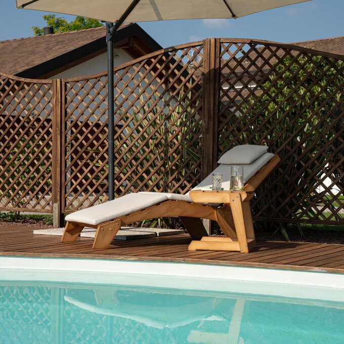 Die Elena-Kollektion feiert die Natur mit nachhaltigen Outdoor-Produkten aus FSC-zertifiziertem Kiefernsperrholz. Jede Platte ist optimiert, um Abfall zu minimieren, und wird mit erneuerbarer Energie bearbeitet. Das ergonomische Design erleichtert die Montage und optimiert Material und Energie. Wasserbasierte, geruchslose und widerstandsfähige Lacke erhalten die Holzmaserung. Jedes Produkt wird auf Langlebigkeit und Sicherheit getestet. Die Verpackung aus FSC-Karton minimiert Volumen und CO₂-Emissionen. Elena kombiniert natürliche Materialien mit modernem, dynamischem Design.