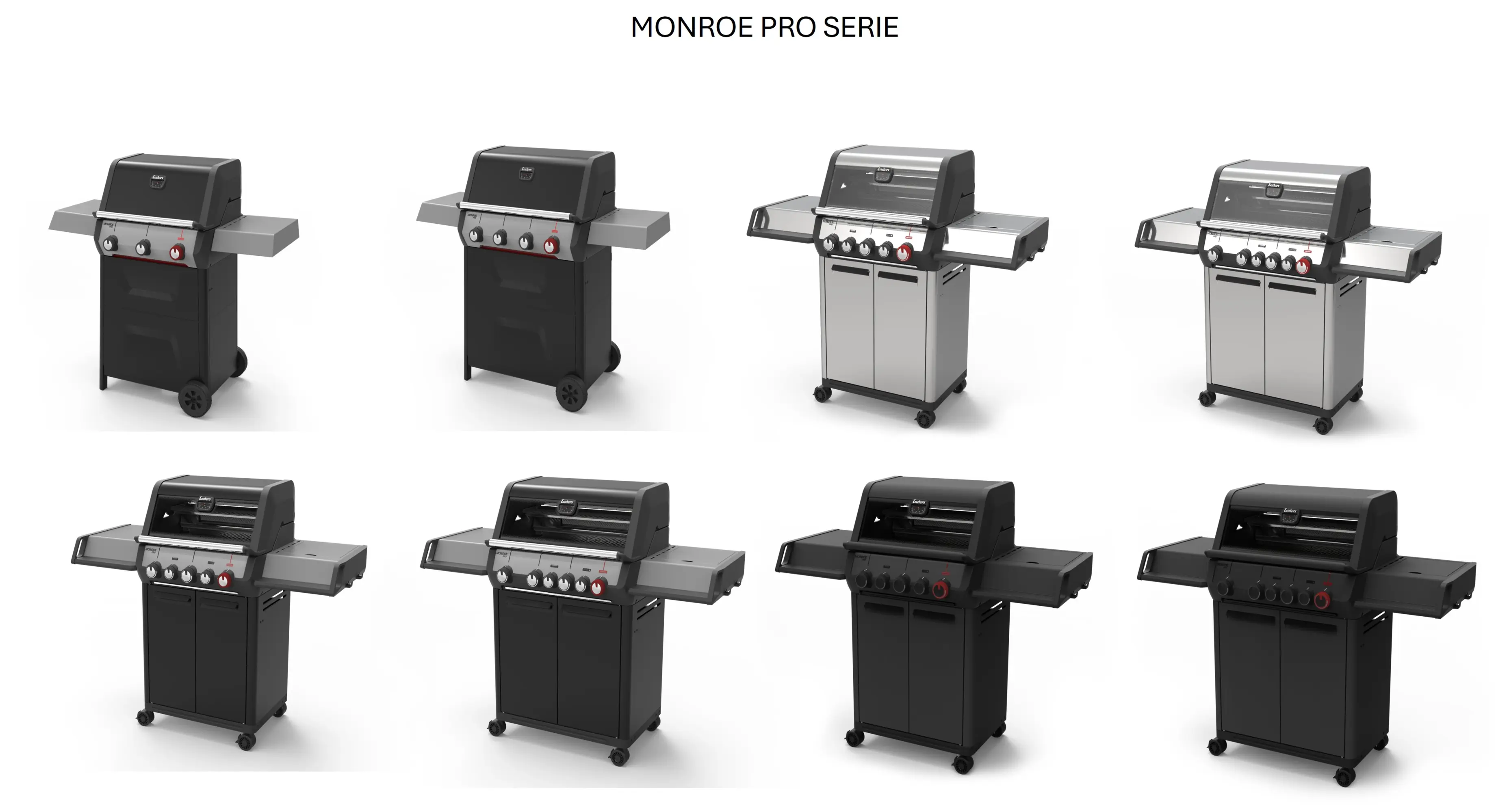 Die neue Generation der Enders Monroe Pro Serie überzeugt mit modernem Redesign: Aludruckguss-Gehäuse in dynamischer Optik, abgerundete Kanten und Fronten, größeres Panorama-Sichtfenster und neues, elegantes Thermometer. Bewährte Technologie inklusive: Turbo-Zone™ mit bis zu 800 °C, Heat Range™ für präzise Temperaturkontrolle, Switch Grid™ für vielseitige Zubehöreinsätze sowie Simple Clean™ für einfache Reinigung. Hochwertige Materialien wie Edelstahl und Aluguss garantieren langlebige Qualität für stilvolles Grillen im Freien. Zusätzlich sorgen Elemente wie der neue Gasflaschenhalter oder die Regler-Knöpfe für eine verbesserte Ergonomie.