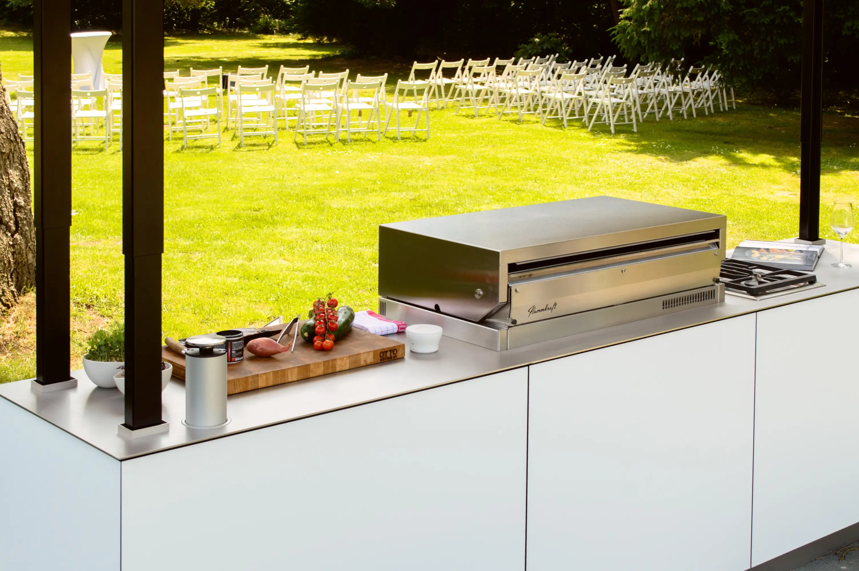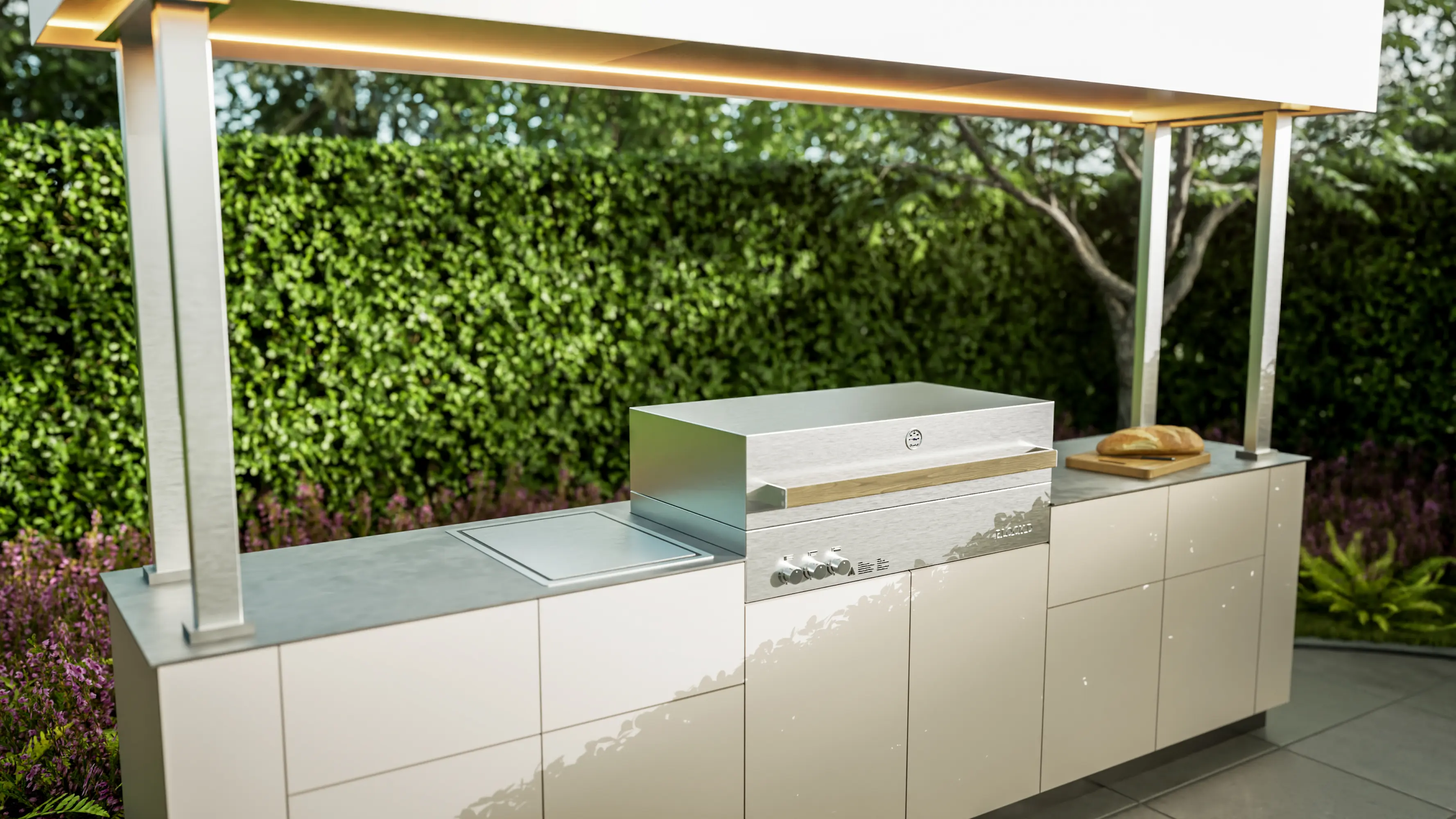 Die H1 Outdoor-Küche vereint elegantes Design, innovative Technik und höchste Qualität. Das wetterfeste Gehäuse aus Compact-Schichtstoff ist langlebig und passt perfekt in jede Außenanlage. Im Zentrum steht ein hochwertiger Flammkraft-Grill für perfekte Ergebnisse. Die unsichtbare Invisacook-Induktion ermöglicht Kochen direkt auf der Arbeitsfläche, die zudem motorisch höhenverstellbar ist und mit LED-Beleuchtung für Atmosphäre sorgt. Für Frische sorgt eine Liebherr Outdoor-Kühlung. Die H1 ist die ideale Lösung für anspruchsvolles Outdoor-Cooking im Garten, Resort oder Gastronomie.