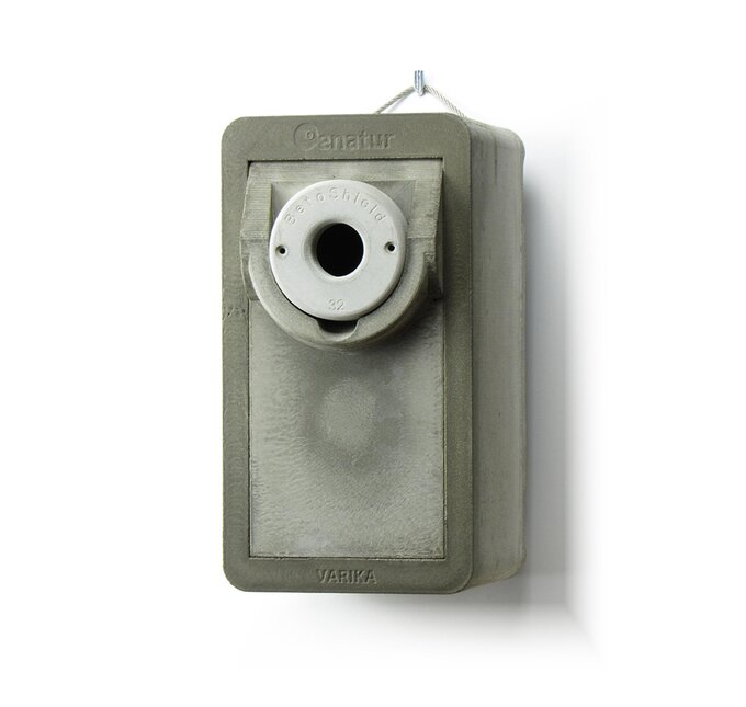 Mit dem raffinierten Frontsystem passen Sie den VARIKA im Nu an Ihre Wunsch-Vogelart an. Ohne Fluglochring wird er zum Halbhöhlenbrüter-Nistkasten, ohne Frontelement zum großzügigen Futterhaus. Mit dem BioSpio® Kamera-Einsatz können Sie den VARIKA leicht mit einer Kamera ausrüsten und das spannende Geschehen im Inneren beobachten. Damit es mit dem Vogel-Einzug klappt, ist der VARIKA aus Holzbeton gemacht und hängt dank der patentierten 3-Punkt-Aufhängung immer wackelfrei.