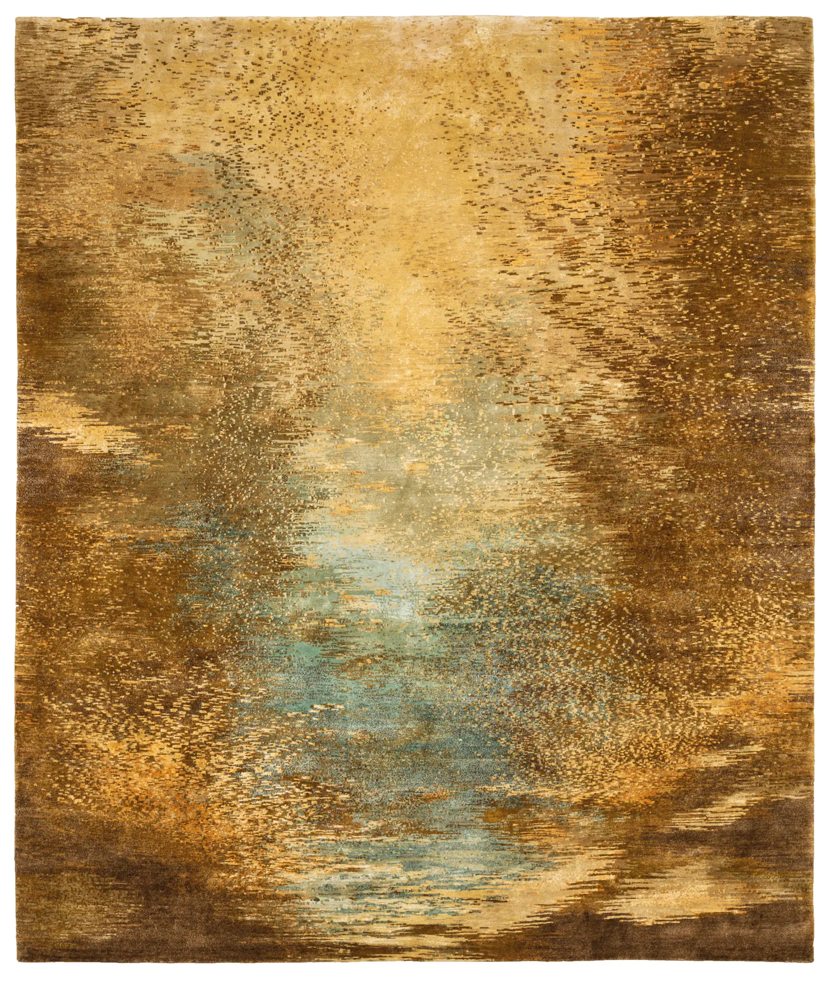 Der Teppich DOTO aus der Kollektion Cyprinus setzt die fließenden Bewegungen und schimmernden Reflexe des Meeres textil um. Er wird in jahrhundertealter Tradition gefertigt. Bei dem rund vier Monate dauernden Knüpfprozess werden ausschließlich Naturmaterialien wie handversponnene tibetische Hochlandwolle, nepalesische Brennnessel und chinesische Seide verwendet. Dieser hochwertige Materialmix des Teppichs bietet eine besondere Haptik, subtilen Glanz und sorgt für optische Tiefe und zusätzlich für eine hohe Strapazierfähigkeit.