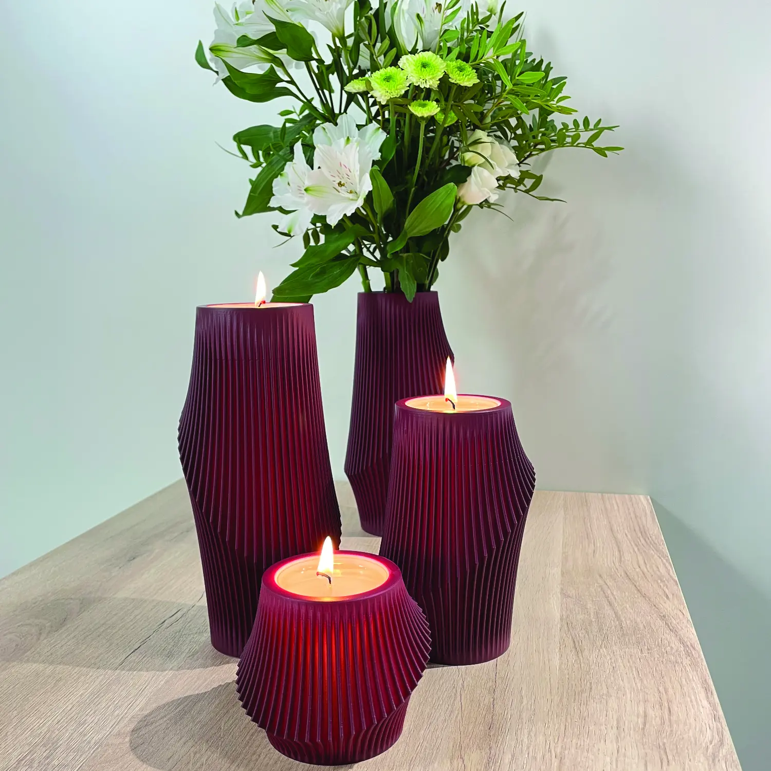 Unsere Serie FIRA vereint skulpturale Eleganz mit modernster Fertigungstechnologie zu einem klaren Design. Ihre fließenden, gefalteten Strukturen erzeugen ein faszinierendes Spiel von Licht und Schatten und schaffen eine stimmungsvolle Atmosphäre. Nachhaltig im 3D-Druckverfahren und vollständig in Deutschland hergestellt, stehen sie für innovative Gestaltung, Präzision und verantwortungsbewusste Produktion. Langlebig, leicht und in einzigartiger Formensprache verkörpern die Teelichthalter einen zeitgemäßen Ansatz dekorativer Beleuchtung. FIRA ist in 3 Größen und den Farben Ecru, Cloud Grey, Cappuccino, Frosty Mint und Merlot Red erhältlich.