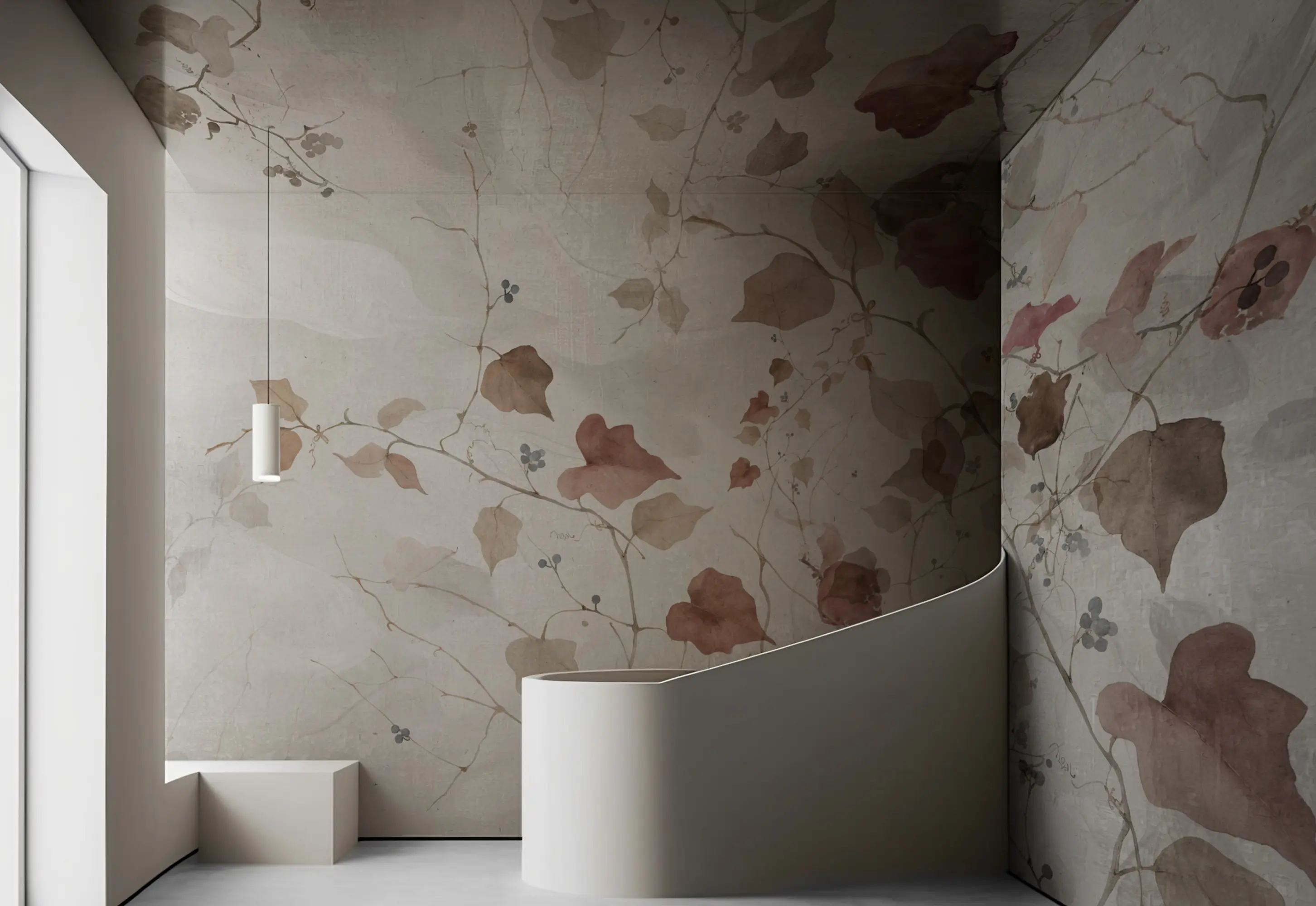 Ranken-Tapete bringt einen dezenten Hauch von Natur in den Raum und fällt durch ihre sanften Beige- und Rosatöne auf. Ihre verspielten und zugleich eleganten Muster verleihen jedem Interieur Wärme und Raffinesse. Sie ist ideal, um eine beruhigende und anspruchsvolle Atmosphäre zu schaffen.