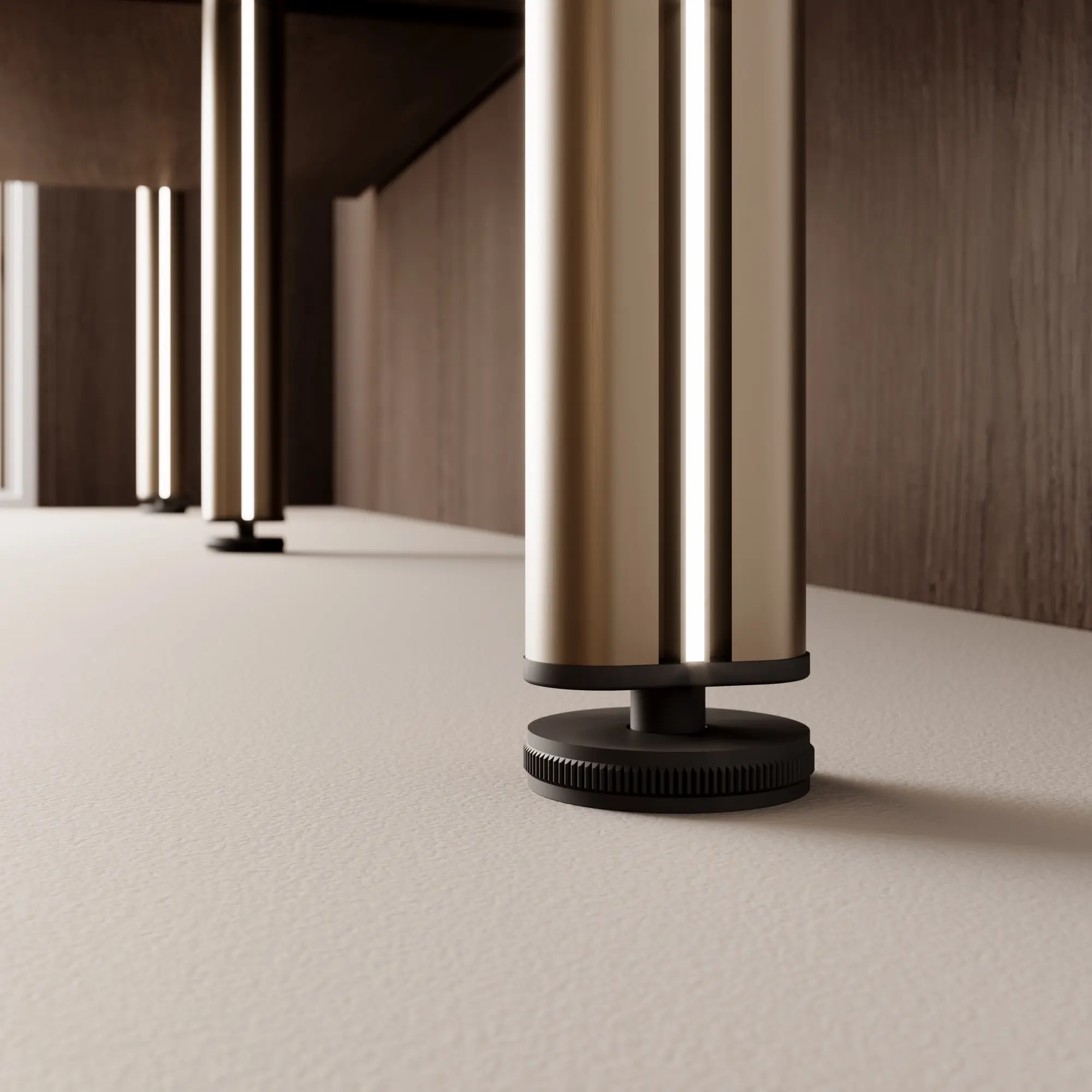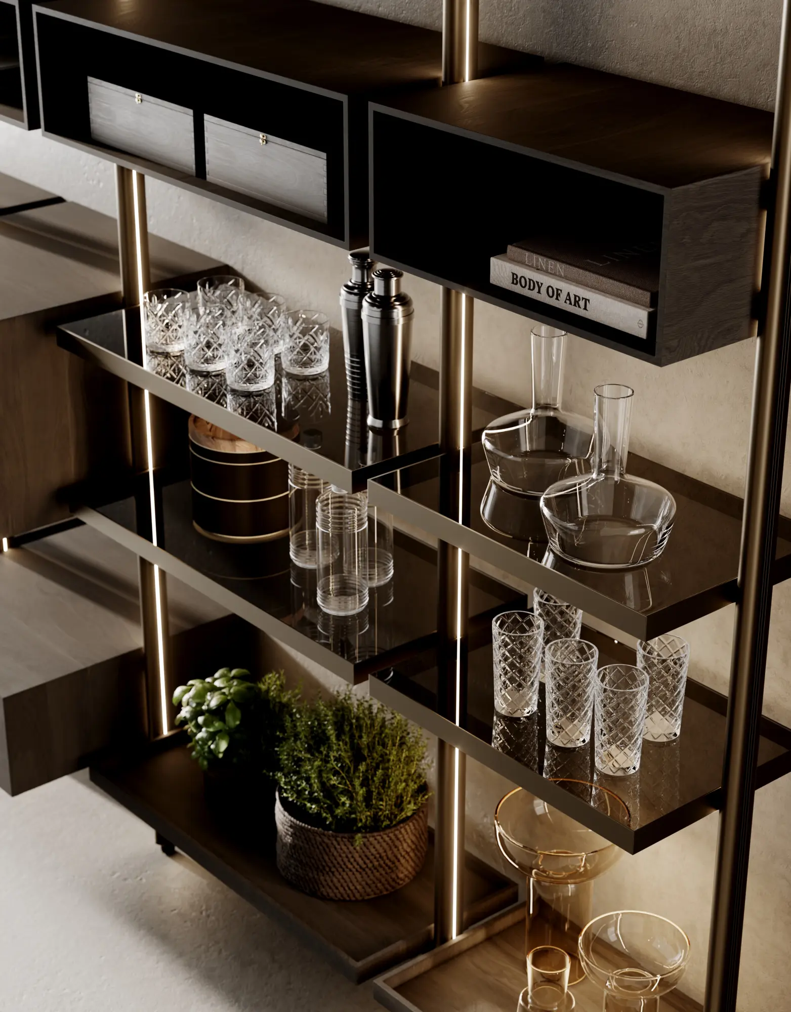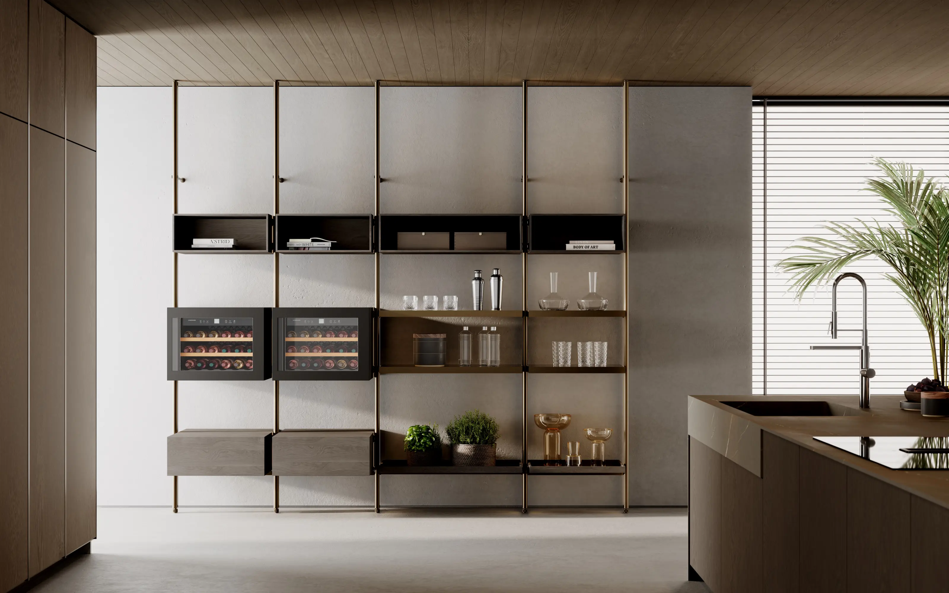 Das neue Wandsystem Eureka, entworfen von Andrea Federici, ist ein Beispiel großer ästhetischer Raffinesse, die Eleganz und technische Lösungen hervorhebt, welche zur Erfüllung der wichtigsten Marktanforderungen entwickelt wurden. Die eigentliche Revolution liegt im Namen der Struktur, „HIDE“, der die Idee eines Verstecks hervorruft, wo die gesamte Elektrik im Aluminiumprofil und im unteren Staufach verborgen ist, was die Komposition ästhetisch sauber und funktionell innovativ macht.