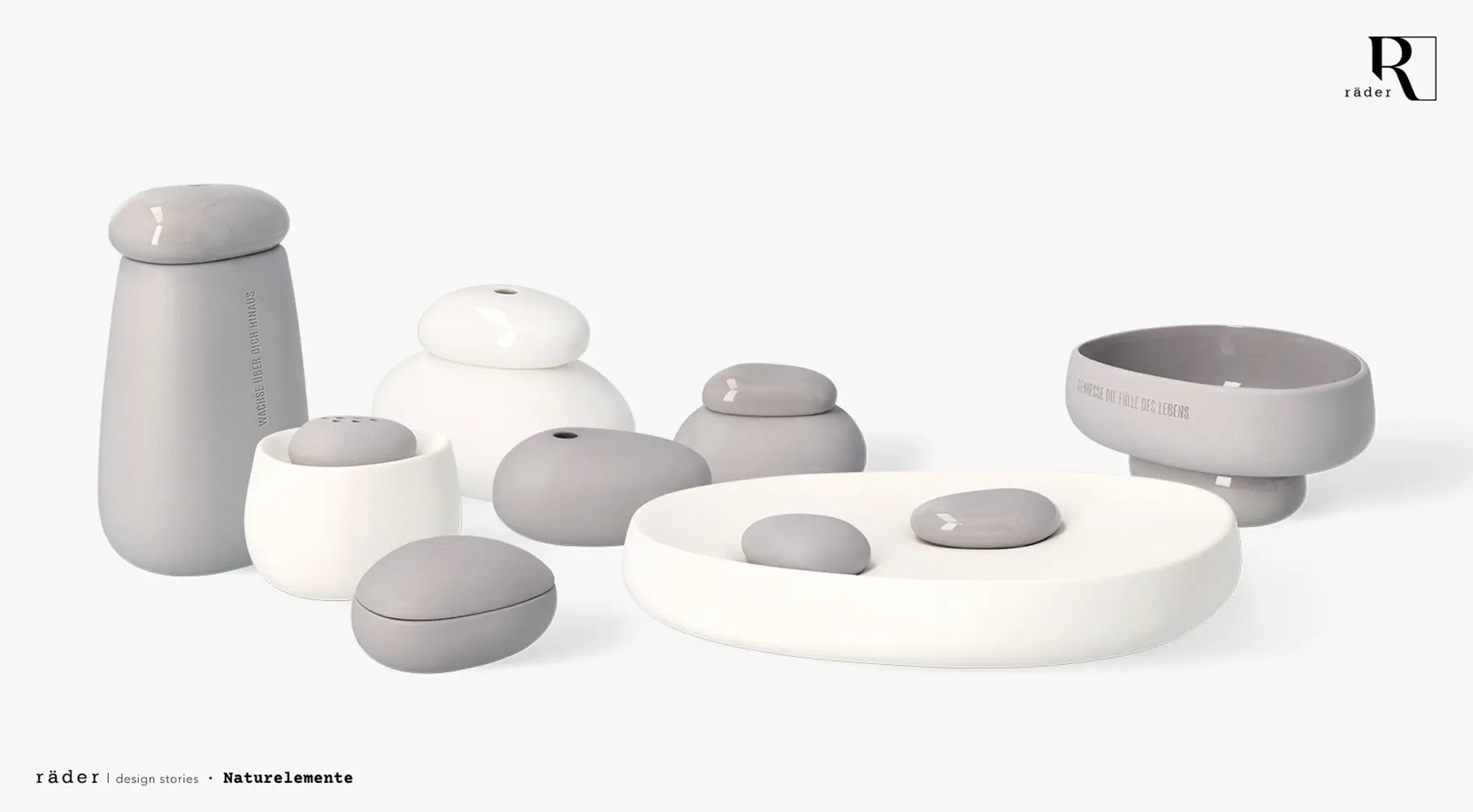 Die räder Naturelemente-Kollektion steht für Einfachheit mit Tiefe, für Design, das Räume atmen lässt. Die Formen der Kollektion greifen die Sprache der Natur auf: weich und asymmetrisch; wie vom Wasser geformte Kieselsteine. Aus robustem Steinzeug gefertigt, mit einem Spiel aus glasierten und matten Oberflächen, sind die Produkte auch haptisch ein Erlebnis. Die konsequente Formsprache bietet dabei maximale Kombinationsfreiheit. Auch die Farbgebung hält sich sanft zurück und lässt der Form den Fokus: warmes Grau und natürliches Weiß fungieren im harmonischen Wechselspiel. Die Ikebana-Elemente schenken der Kollektion einen kunstvollen Rahmen.