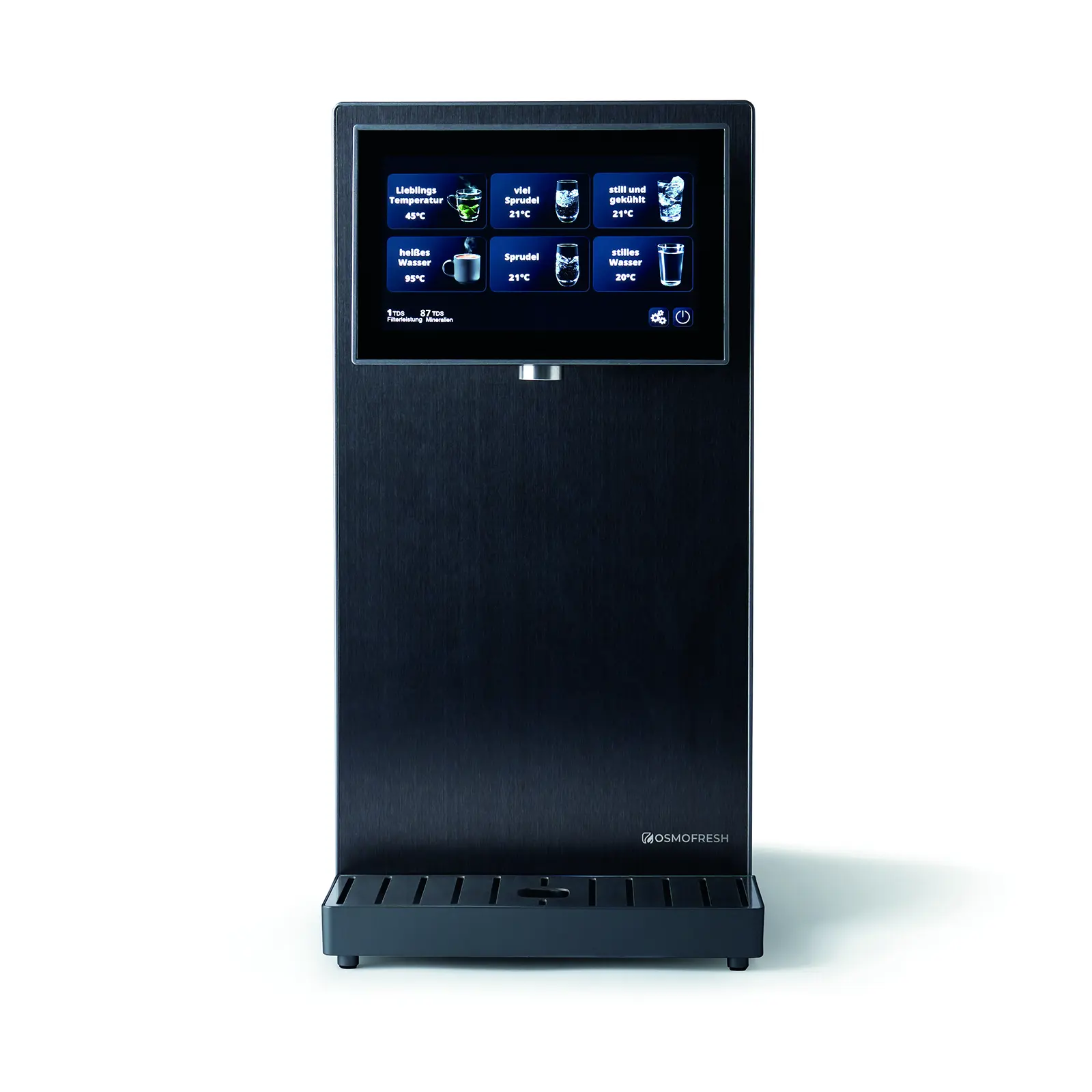 Die Fusion Pro vereint hochwertige Materialien mit funktionaler Eleganz und außergewöhnlicher Filterleistung. Sie kommt mit nahezu jedem Eingangswasser zurecht und liefert stets mineralisiertes Trinkwasser in höchster Qualität. Die technisch determinierte, kastenartige Form wird durch eine Front aus gebürstetem Edelstahl und einen Auslass aus massivem Edelstahl veredelt. Das abgesetzte 7”-Touchdisplay aus Glas lockert die Form auf und schafft visuelle Leichtigkeit. Trotz komplexer Technik bleibt die Bedienung dank intuitiver Menüführung einfach. Mit Tank oder Leitungsanschluss nutzbar und nur 22 cm breit.