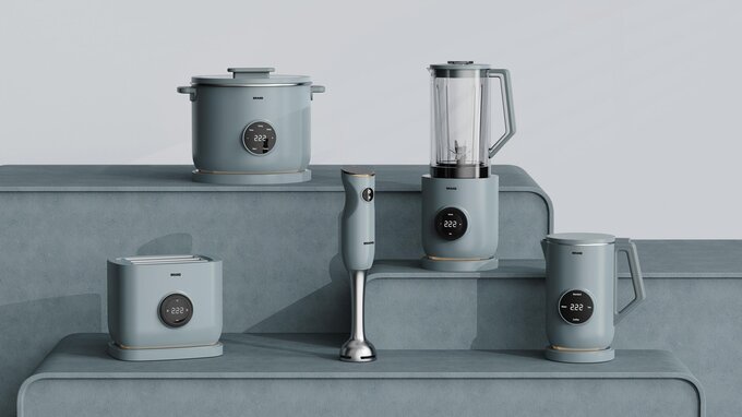 Die »Zen« Küchengeräte-Serie besticht durch ihre klare Formensprache und die harmonische Integration analoger und digitaler Schnittstellen. Ihre standardisierten Bedienelemente fördern sowohl eine intuitive Benutzung als auch eine kohärente Markenidentität, die den modernen Wunsch nach nahtlosen Wohnkonzepten unterstützt.