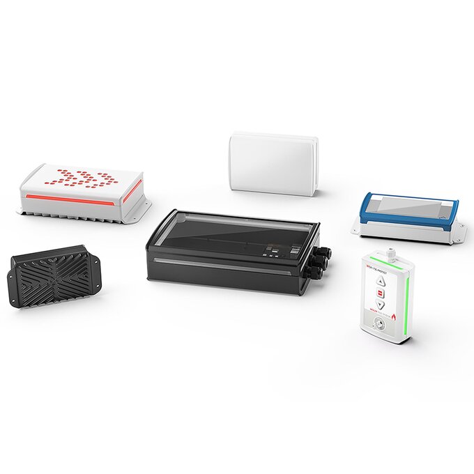 Das innovative Gehäusekonzept kombiniert modernes Design mit flexiblen, kundenspezifischen Gestaltungsmöglichkeiten, einschließlich Beleuchtung und fortschrittlicher Kühlung. Ein Unterteil aus Metall und ein Oberteil aus Kunststoff bilden die ideale Kombination für Wireless-Anwendungen mit Kühlbedarf. Transparente und transluzente Deckel ermöglichen lichttechnische Akzente, während farbliche Variationen durch verschiedenfarbige Gehäuseteile erzielt werden können. Die Designabdeckung in Rahmenform eignet sich für die Integration von Tastaturen und Displays, während die geschlossene Variante eine saubere Optik oder individuelle Designs bietet.