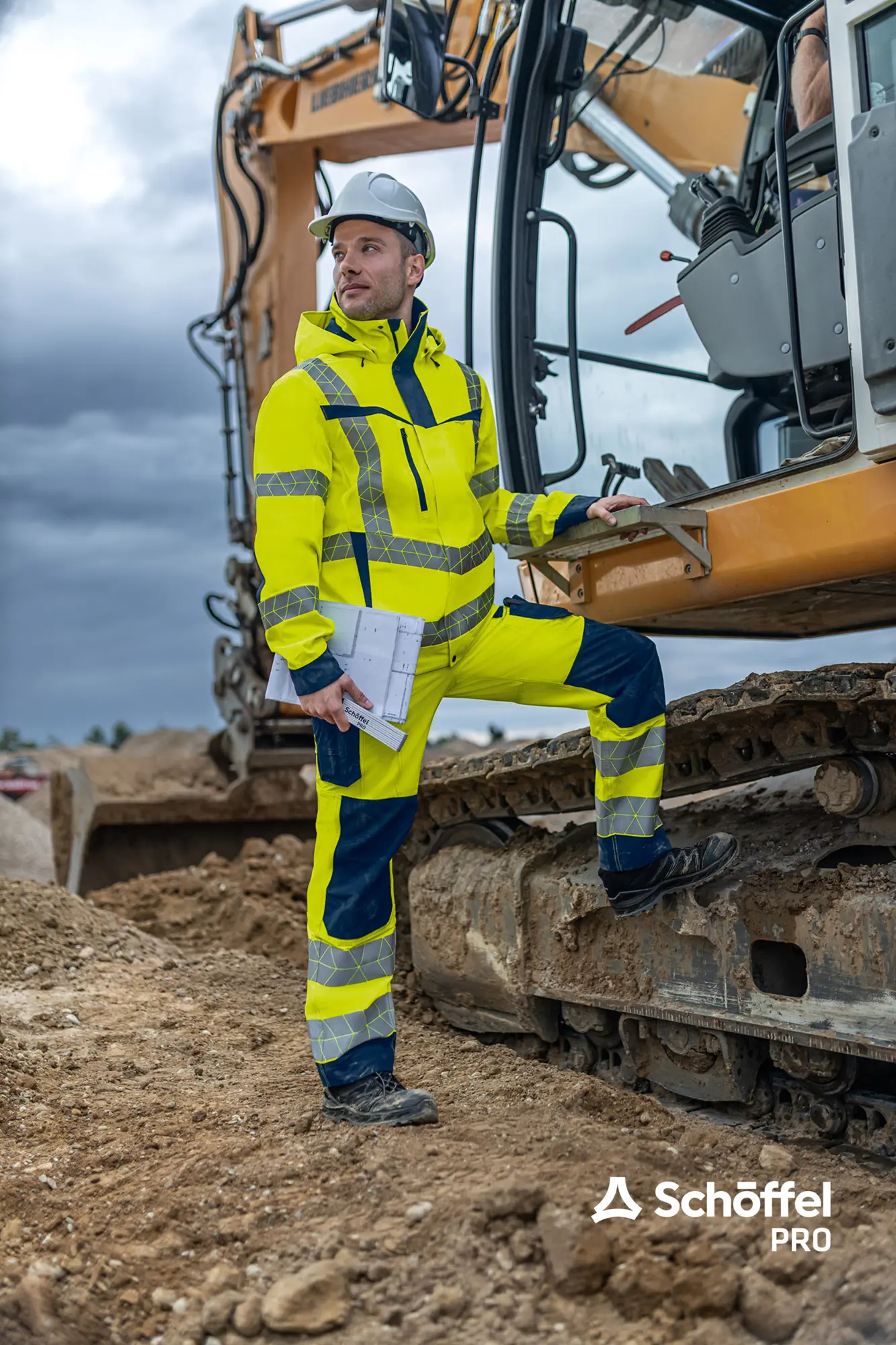 Schöffel PRO denkt Warnschutz Arbeitsbekleidung neu: Jedes Produkt wird durch 4D Body Mapping Design in Zusammenarbeit mit den Nutzern entwickelt. So entstehen Lösungen, die Sicherheit, Robustheit, Komfort und Nachhaltigkeit maximieren. Alle Produkte verfügen über elastische und neu platzierte PROReflex®-Streifen, die aus jedem Blickwinkel Sichtbarkeit gewährleisten. Mit langlebigen Materialien – wie Sorona®-Faser aus Mais, recyceltem Polyester oder Bio-Baumwolle – sowie durchdachten Details – wie helmkompatiblen Kapuzen, abnehmbaren Ärmeln oder verdecktem Frontreißverschluss mit Wetterschutz – setzt Schöffel PRO neue Standards im Warnschutz.