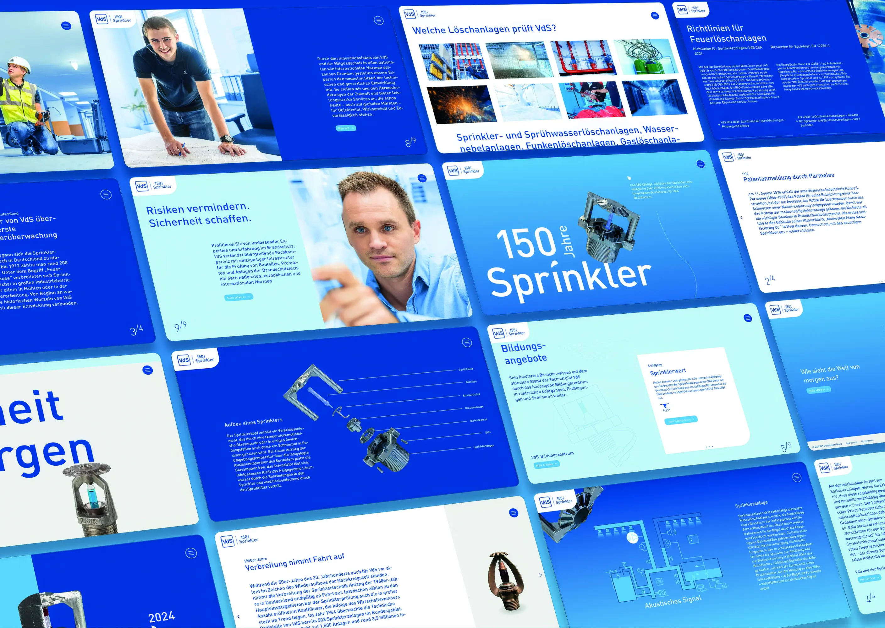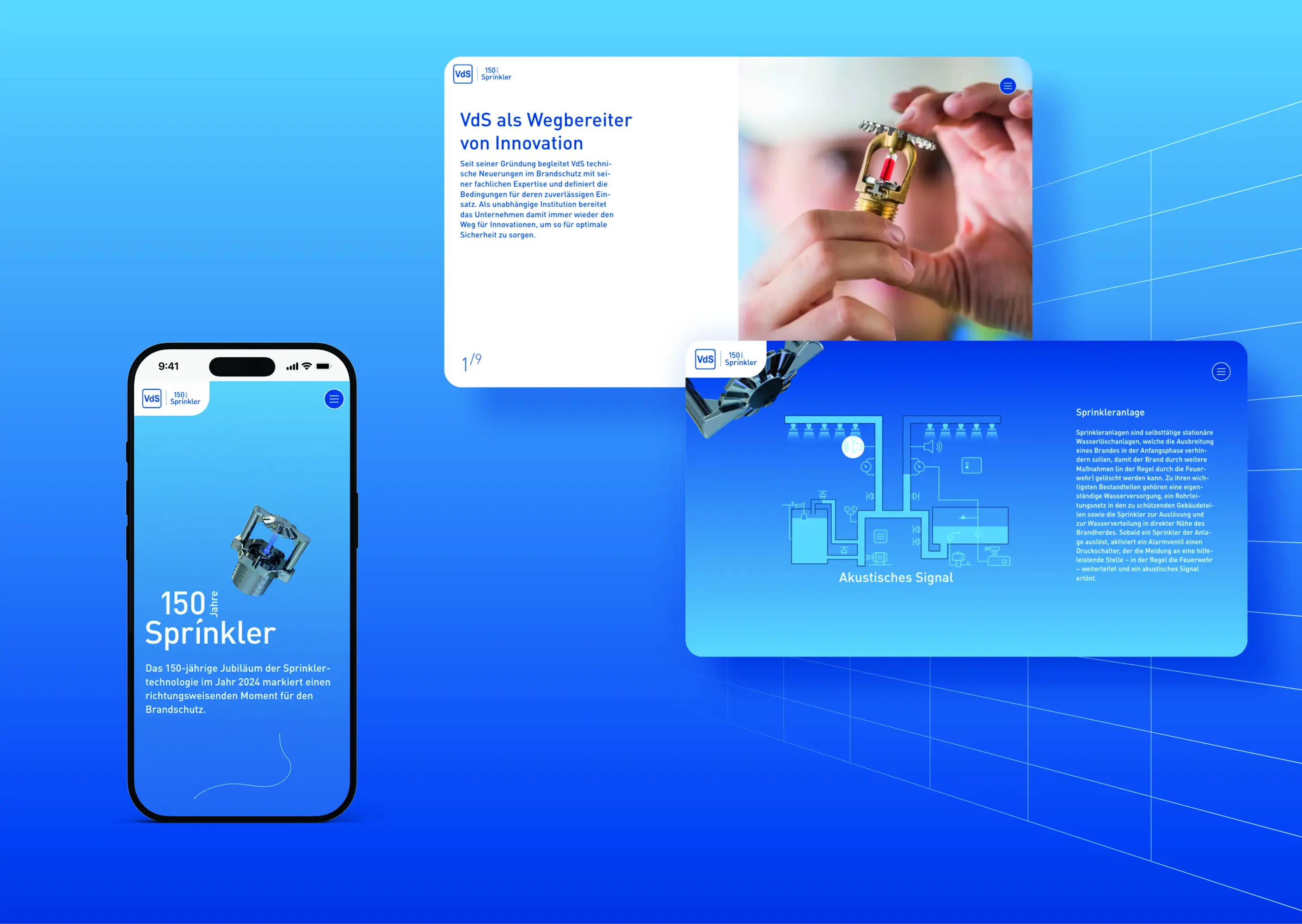 Zum 150-jährigen Jubiläum des Sprinklers entwickelte CRENEO im Auftrag der VdS Schadenverhütung eine ganzheitliche Kampagne. Mit Microsite, Wanderausstellung, Anzeige, Jubiläums-Booklet und einem markanten Kampagnenlogo wurde die Geschichte dieser lebensrettenden Technologie eindrucksvoll erzählt. Großformatige Bilder, interaktive Inhalte und konsistentes Design sorgten für starke Sichtbarkeit online wie offline. Ziel war es, die Bedeutung des Sprinklers für den Brandschutz hervorzuheben – emotional, informativ und nachhaltig.