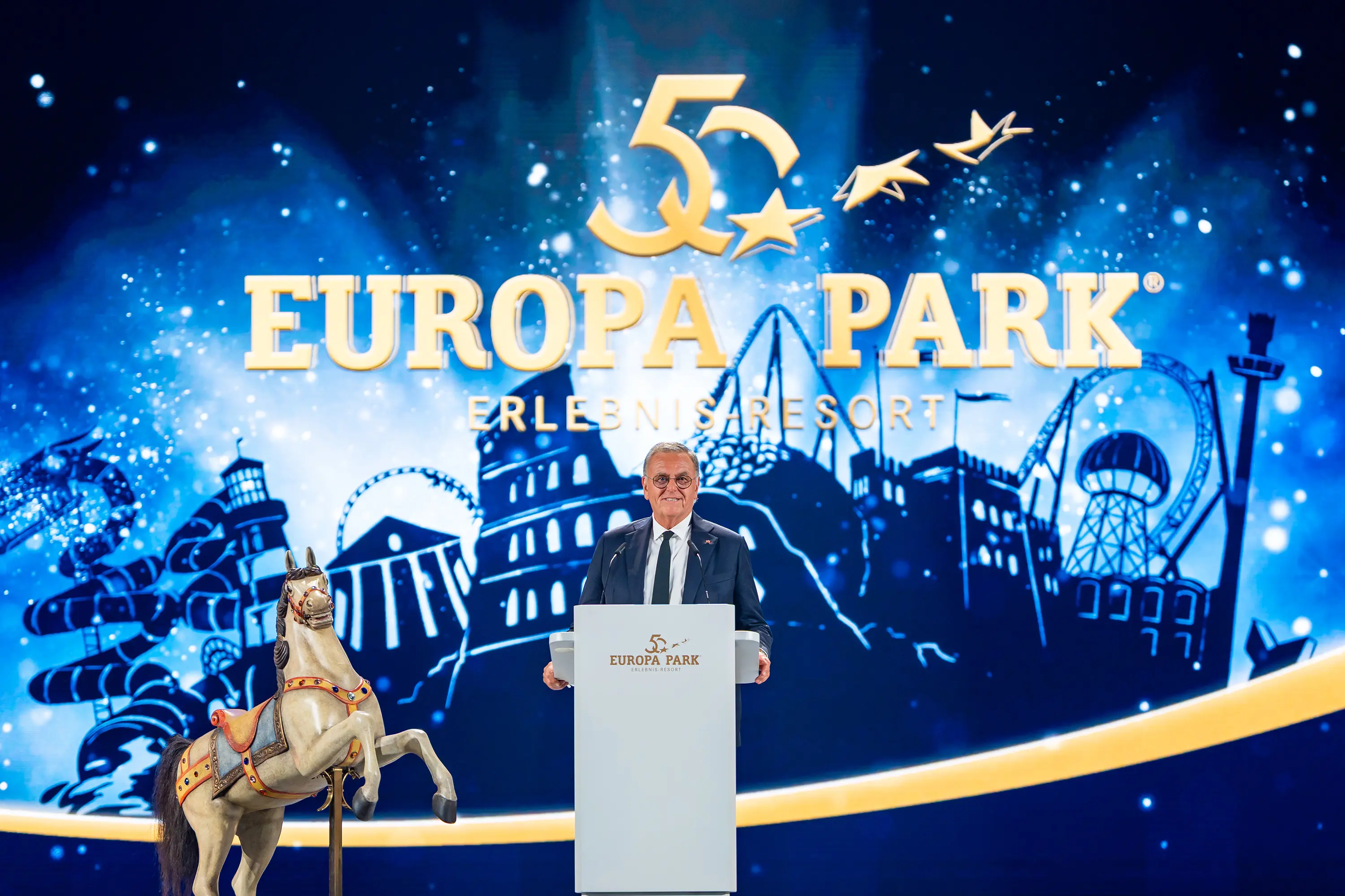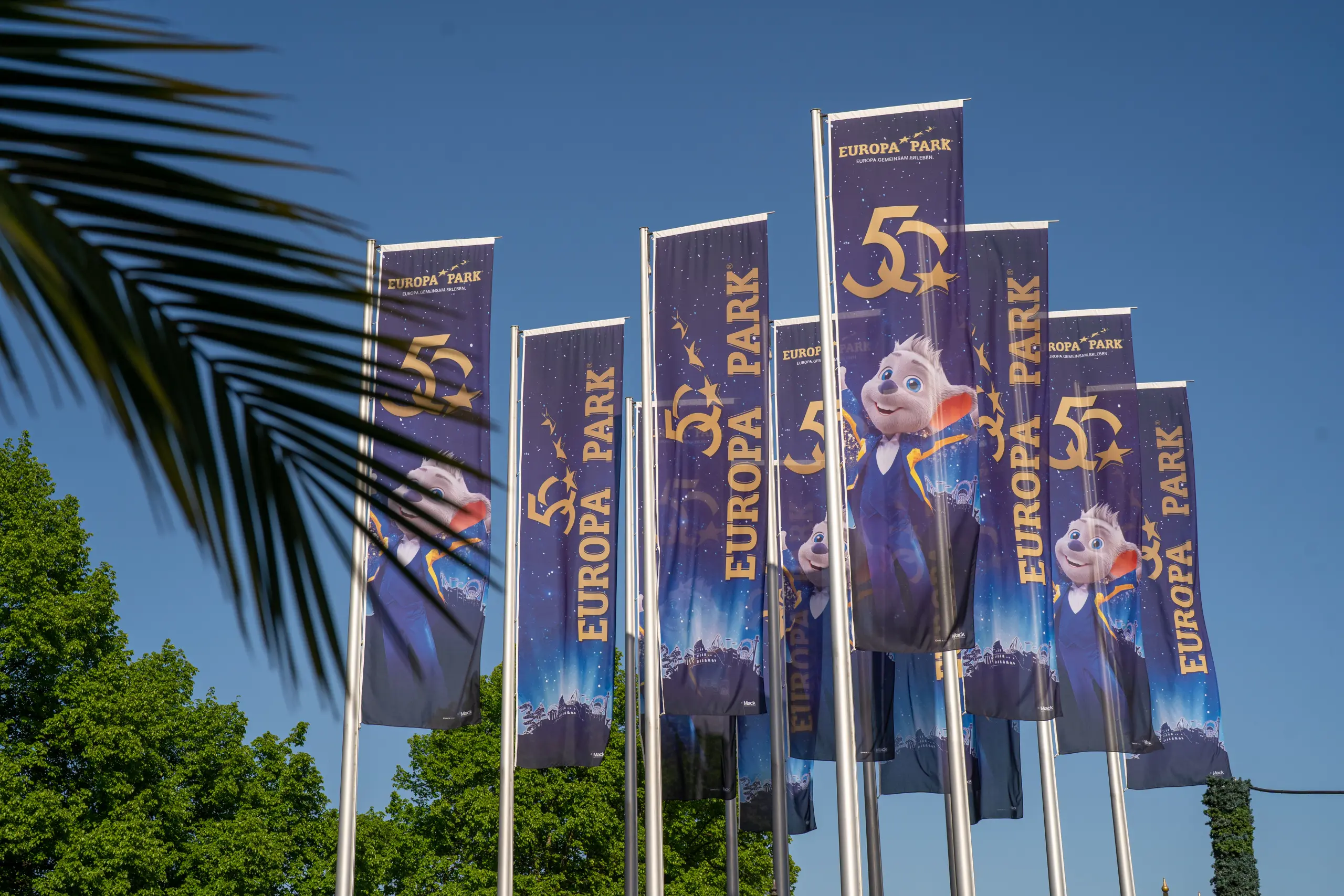 50 Jahre Europa-Park! Ein halbes Jahrhundert voller Emotionen, Innovationen und unvergesslicher Erinnerungen. 2025 wurde das Motto „Feiern unter Sternen“ zum Herzstück der Jubiläumskampagne. Sterne stehen für Magie, Unendlichkeit, Gemeinschaft und europäische Vielfalt. Der Claim „Europa.Gemeinsam.Erleben.“ prägte das Corporate Design. Höhepunkte waren europäische Feste, ein Song von DJ BoBo, die 50-Jahre-Chronik, der Europa-Park-Zeppelin, der Stratosphärenflug der Maskottchen Ed & Edda sowie spektakuläre Shows und eine Parade. Im Mittelpunkt aller Feierlichkeiten standen Gäste, Mitarbeitende und Fans – sie machten das Jubiläum unvergesslich.