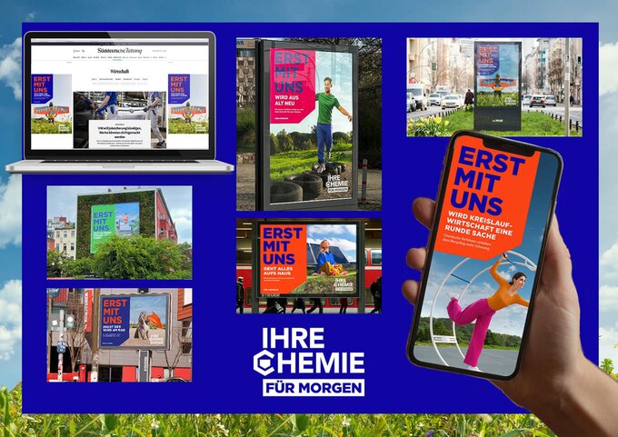 Die chemische Industrie in Deutschland ist als Basisindustrie elementar für das Gelingen der Transformation zu einer klimaneutralen Wirtschaft. Unsere Kampagne vermittelt selbstbewusst, aufmerksamkeitsstark und plakativ genau diese Rolle der Branche bei der Jahrhundertherausforderung. Entsprechend setzt sie auf „Erst mit uns ...“-Motive, die im öffentlichen und digitalen Raum „Ihre Chemie“ nicht nur zum Leuchten bringen, sondern die Branche als innovativ und wegweisend positionieren.