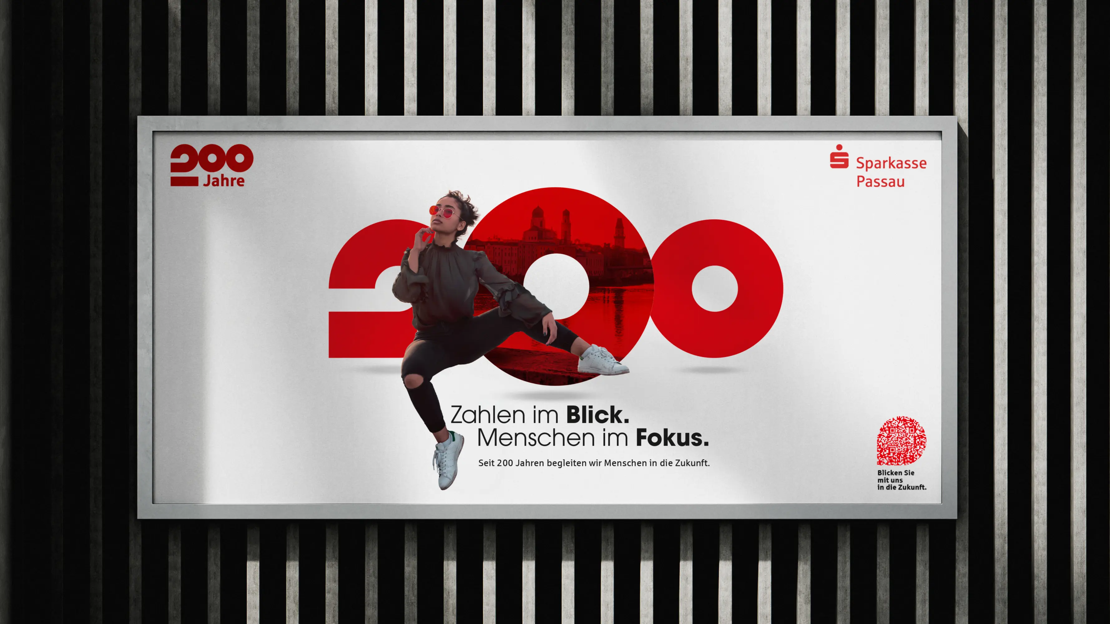 Seit 200 Jahren steht bei der Sparkasse Passau der Mensch im Mittelpunkt. Deshalb ein Design, das sich um Menschen dreht. Mit einem visuellen Fokus: Menschen, so vielfältig wie die Kunden, Partner und Mitarbeiter der Bank. Eine Form mit vielen Funktionen: Eine Pupille, in der sich die Wahrzeichen der Region spiegeln. Eine Linse, die sich auf Menschen konzentriert. Eine Projektionsfläche für unterschiedliche Szenarien. Ein Fernglas, das Weitsicht impliziert. Eine Kampagne, vielfältig und anerkennend mit hohem Integrations- und Identifikationspotenzial. Und ein Claim, der das alles auf den Punkt bringt: „Zahlen im Blick, Menschen im Fokus“.