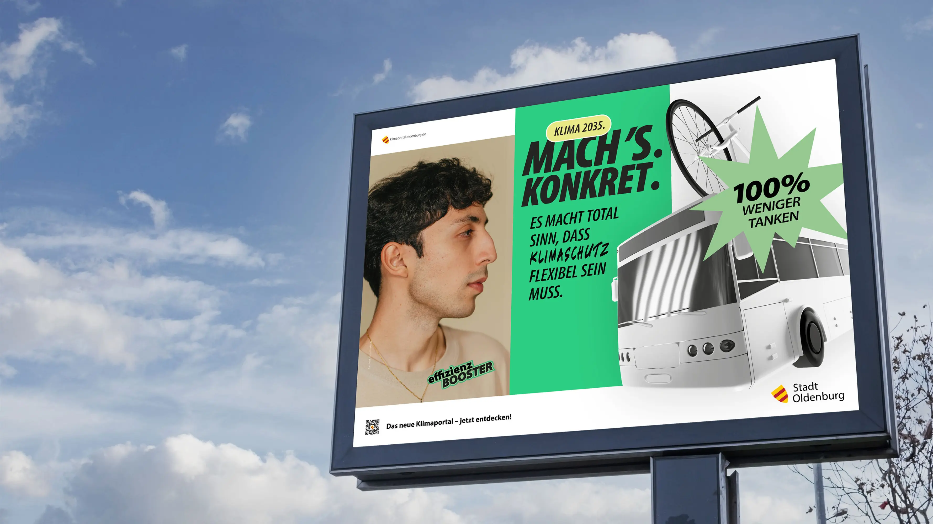 Was tun, wenn die Menschen klimamüde sind? Wenn moralische Appelle ins Leere laufen? Wenn das Gefühl sagt: Ich will einfach mein Leben leben? Die Antwort: Eine Kampagne, die den Spieß umdreht. Die nicht mehr fragt, was du fürs Klima tun kannst – sondern was beim Klimaschutz für dich drin ist. Die Stadt Oldenburg wagt mit einer ungewöhnlich direkten, vorteilsgetriebenen Kampagne den Befreiungsschlag gegen „Klimamüdigkeit“ – mit neuem Narrativ, klarem Nutzenversprechen und starker visueller Sprache. Sie bewirbt damit ihr neues Klimaportal, in dem die Stadtgesellschaft alle Möglichkeiten findet, um aktiv zu werden – mit handfesten Vorteilen.
