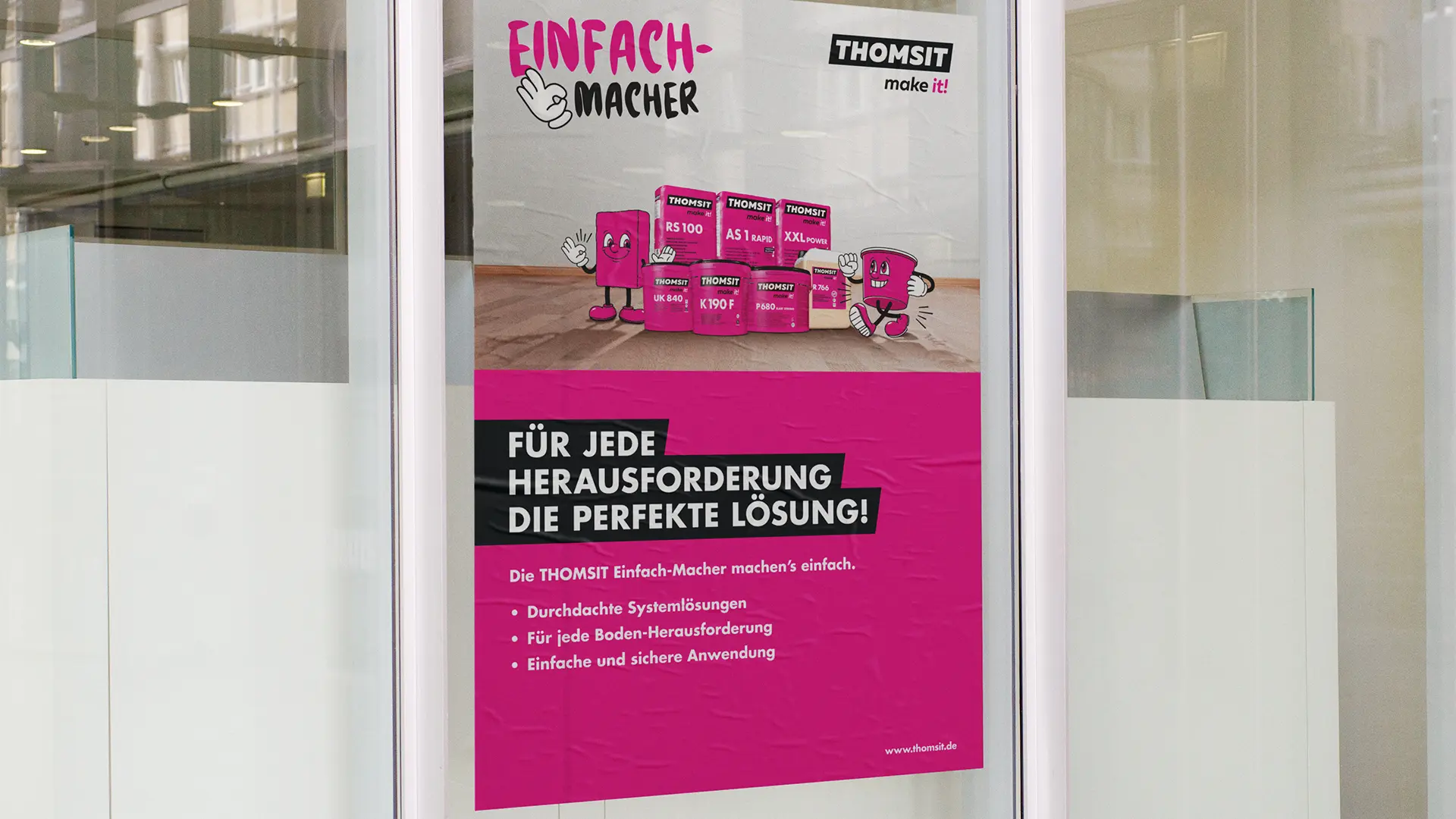Der Bauchemie-Markt ist ein heiß umkämpfter. Umso wichtiger, dass die Verkäufe wie am Schnürchen laufen! Also Marketing- & Vertriebs-Crew an einen Tisch bei zwetschke und dann Tacheles! Sympathisch, dynamisch, nahbar – unsere Charaktere verkörpern, was THOMSIT ausmacht. Und weil wir die vier so abfeiern, haben wir ihnen noch ein interaktives Element geschenkt. Das Spiel zur Kampagne: Mensch mach’s einfach! Selbstredend, dass sämtliche Vertriebstools inkl. beeindruckendem Aufschlag am POS auch von zwetschke kommen. Haben wir einfach gemacht.