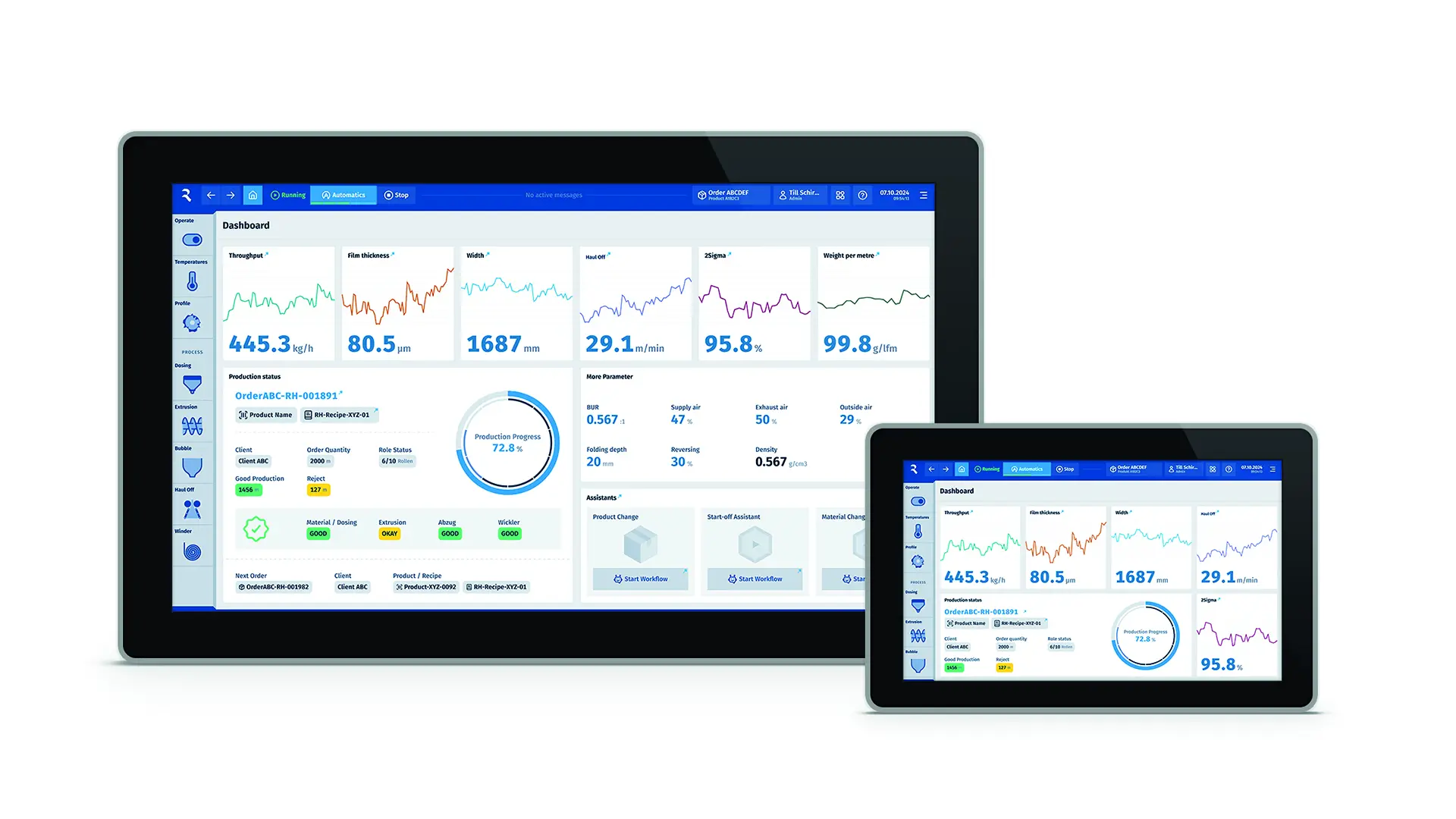 Für die Reifenhäuser Gruppe wurde ein unternehmensweites User Interface entwickelt, das erstmals die drei Geschäftsbereiche Blasfolie, Flachfolie und Vlies in einer konsistenten Designsprache vereint. Ziel war die Harmonisierung historisch gewachsener, heterogener Anforderungen. Der nutzerzentrierte Prozess umfasste Kontextanalysen und Usability-Tests. Ergebnis ist ein modulares, skalierbares UI, das technische Komplexität mit Benutzerfreundlichkeit verbindet. Eine grafische Band-Metapher dient als visuelle Klammer, während Assistenzsysteme, Illustrationen und klare Hierarchien die sichere Steuerung sensibler Produktionsprozesse unterstützen.