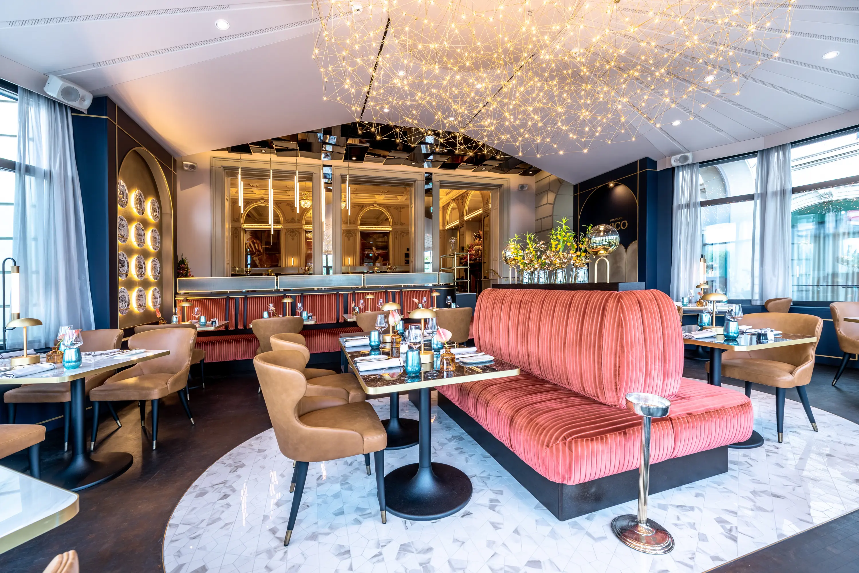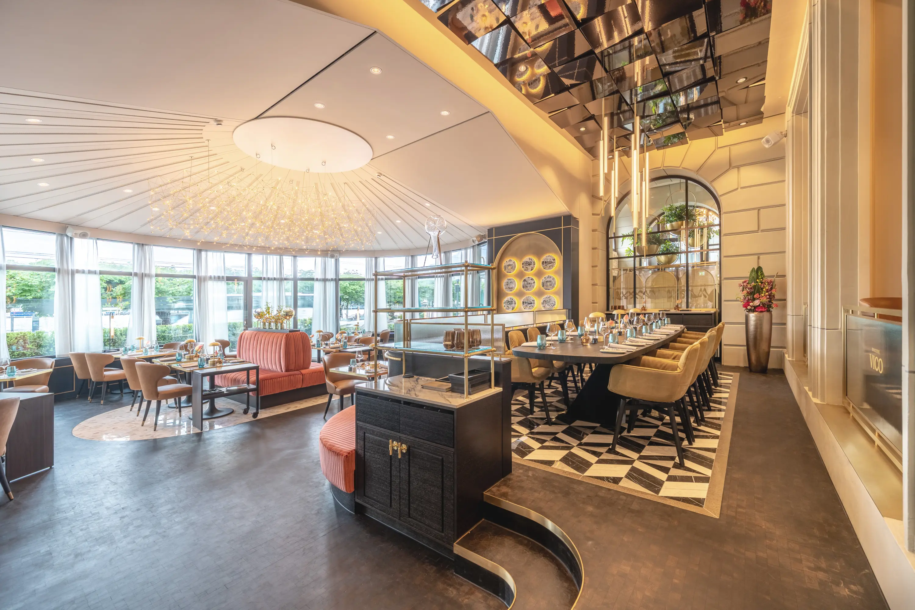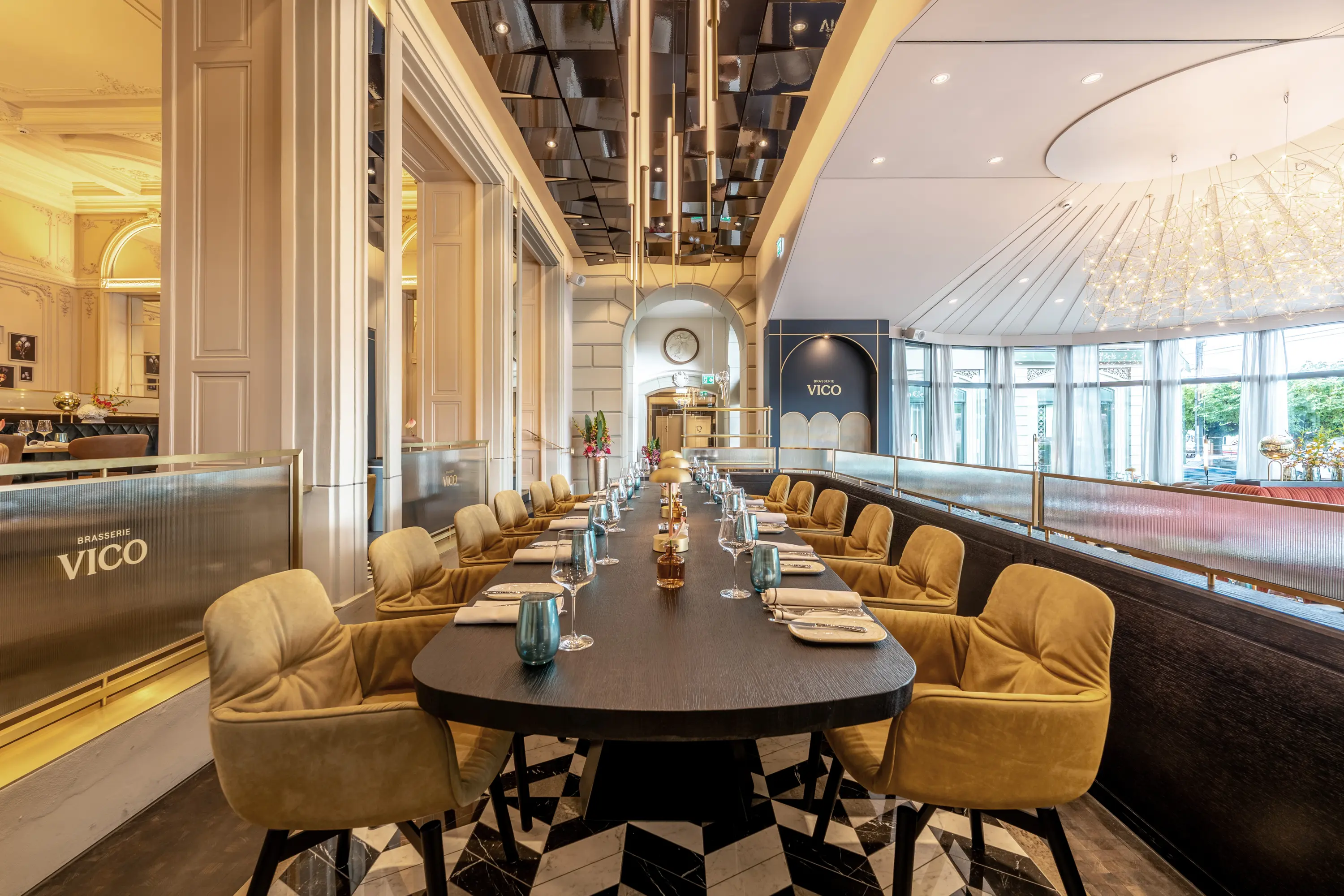 Mit der Brasserie VICO hat das Hotel Schweizerhof Luzern zwei vormals getrennte Restaurantbereiche architektonisch und konzeptionell neu ausgerichtet. Der neue Grundriss mit Nischen, Bänken, Podest und Chef’s Table strukturiert die Fläche und reagiert auf unterschiedliche Gästebedürfnisse. Historische Bauteile wie Kronleuchter, Stuckaturen und Cheminées wurden respektvoll integriert. Farbgebung, Materialisierung und Möblierung sind präzise aufeinander abgestimmt. Die Lichtführung unterstützt die Raumgliederung, betont charakteristische Bauteile und schafft je nach Tageszeit differenzierte Stimmungen.