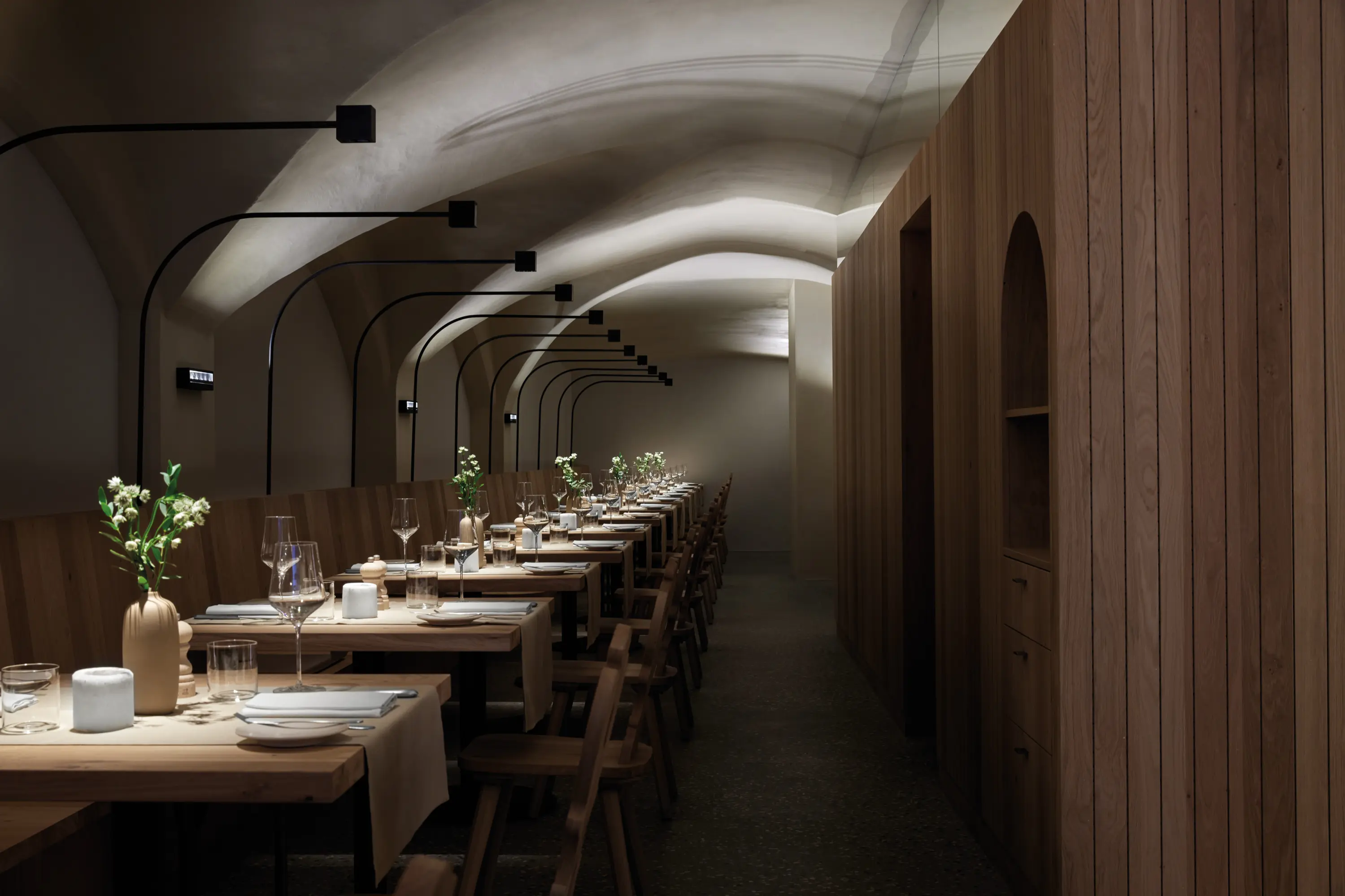 Das 600 Jahre alte Laubengebäude wurde im Zuge einer umfassenden Sanierung zur Gänze entkernt und, basierend auf seinem ursprünglichen Erscheinungsbild, behutsam und respektvoll renoviert. Das zurückhaltende Interior Design spielt mit Akzenten, die den Wert und die Wirkungskraft der alten Mauern und Rundbögen nochmal unterstreichen. Nachhaltigkeit und Einfachheit prägen das Kernkonzept der detailverliebten und zukunftsweisenden Revitalisierung dieses Stadthauses. Beim Wiederaufbau wurden ausschließlich natürliche Materialien verwendet, auch der alltägliche Betrieb von Restaurant und Suiten folgt konsequent ökologischen Prinzipien.