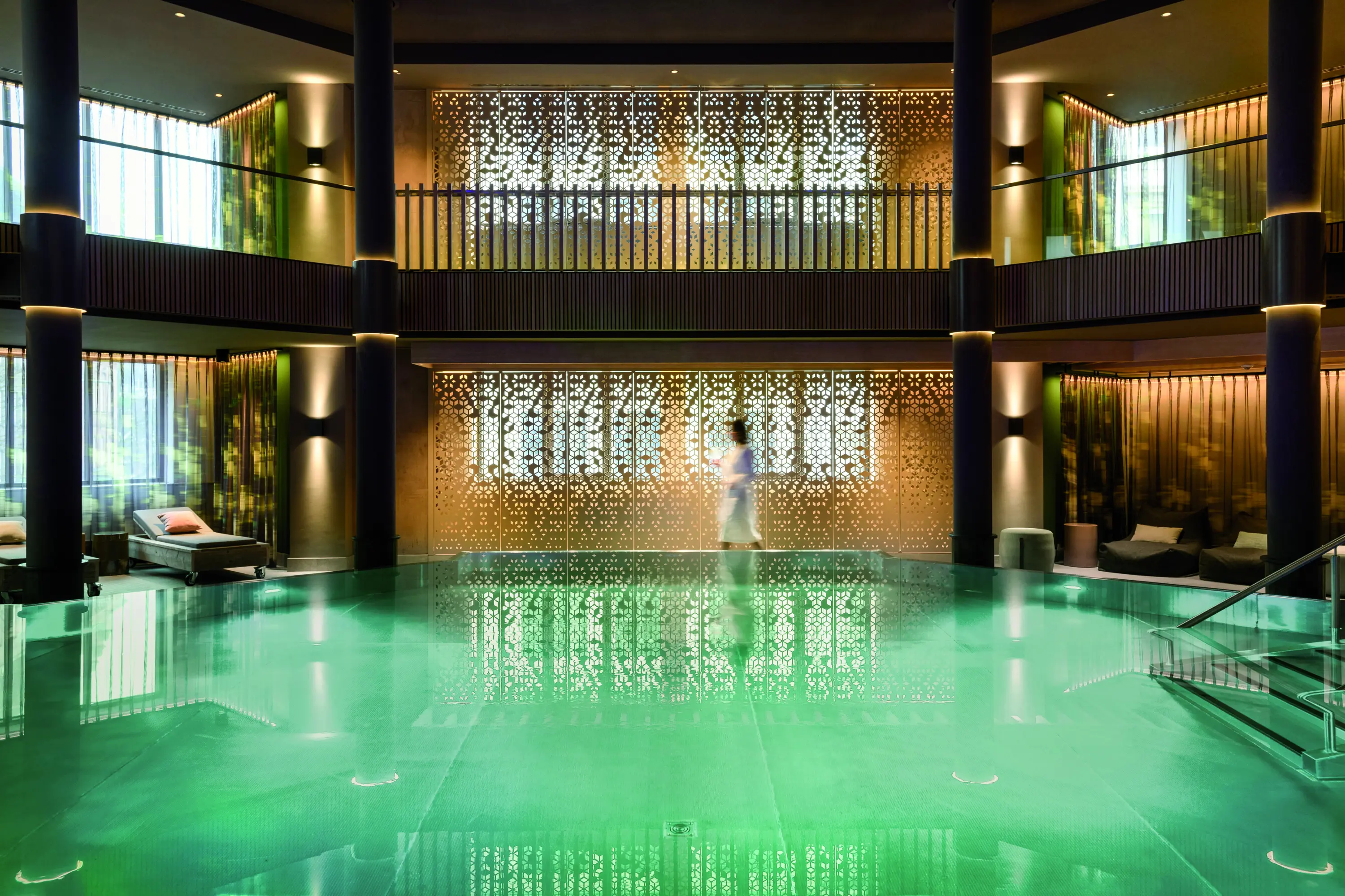 Die Poollandschaft des traditionsreichen Hotel Europäischer Hof in Hamburg erstreckt sich über zwei Geschosse und wurde im Rahmen einer Komplettsanierung zeitgemäß aufgewertet. Inmitten der Großstadt entstand durch harmonische Formensprache, erdige Farben und natürliche Materialien ein entschleunigender Rückzugsort. Die Rhythmisierung von Flächen und Raumabfolgen sowie eine Lichtführung, die mit Transparenzen und Reflektionen spielt, schaffen eine meditative und zugleich sinnliche Atmosphäre.