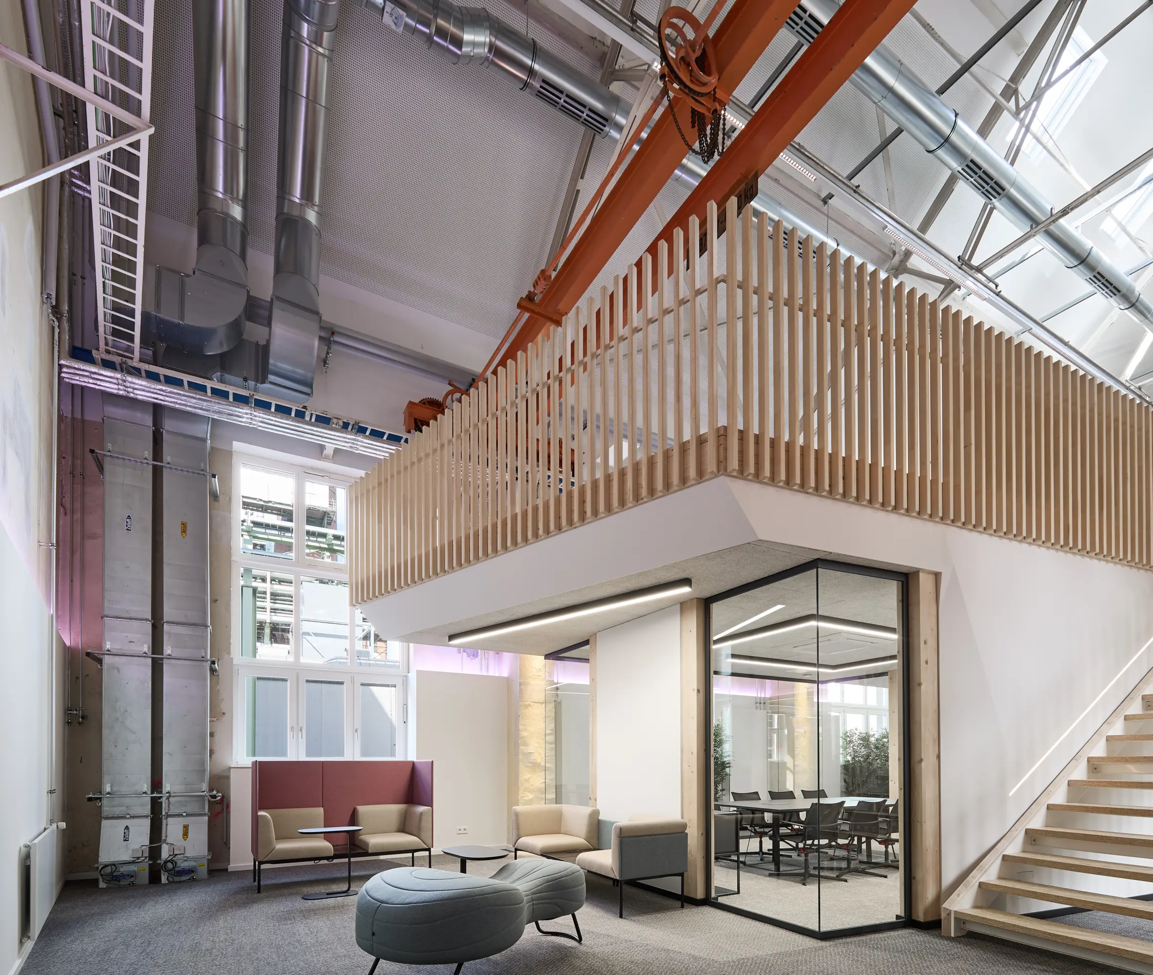 Eine ehemalige Industriestätte wurde zu einem New-Work-Büro transformiert. Im Industriepark erhebt sich eine gotisch anmutende Industriekathedrale, in der historische Substanz und moderne Arbeitswelten verschmelzen. Die Bestandsarchitektur wurde bewahrt und neu interpretiert: Agiles Arbeiten, Rückzugs- und Begegnungsflächen stehen im Fokus. Ein eingestellter Baukörper wirkt durch kubistische Schnitte leicht, elegant schwebend. Ein Lichtkonzept betont Übergänge, Begrünung deutet die Rückeroberung durch die Natur an. Ein Dreiklang aus Geschichte, Architektur und Innovation – eine Arbeitswelt im Einklang von Bestand und Zukunft.
