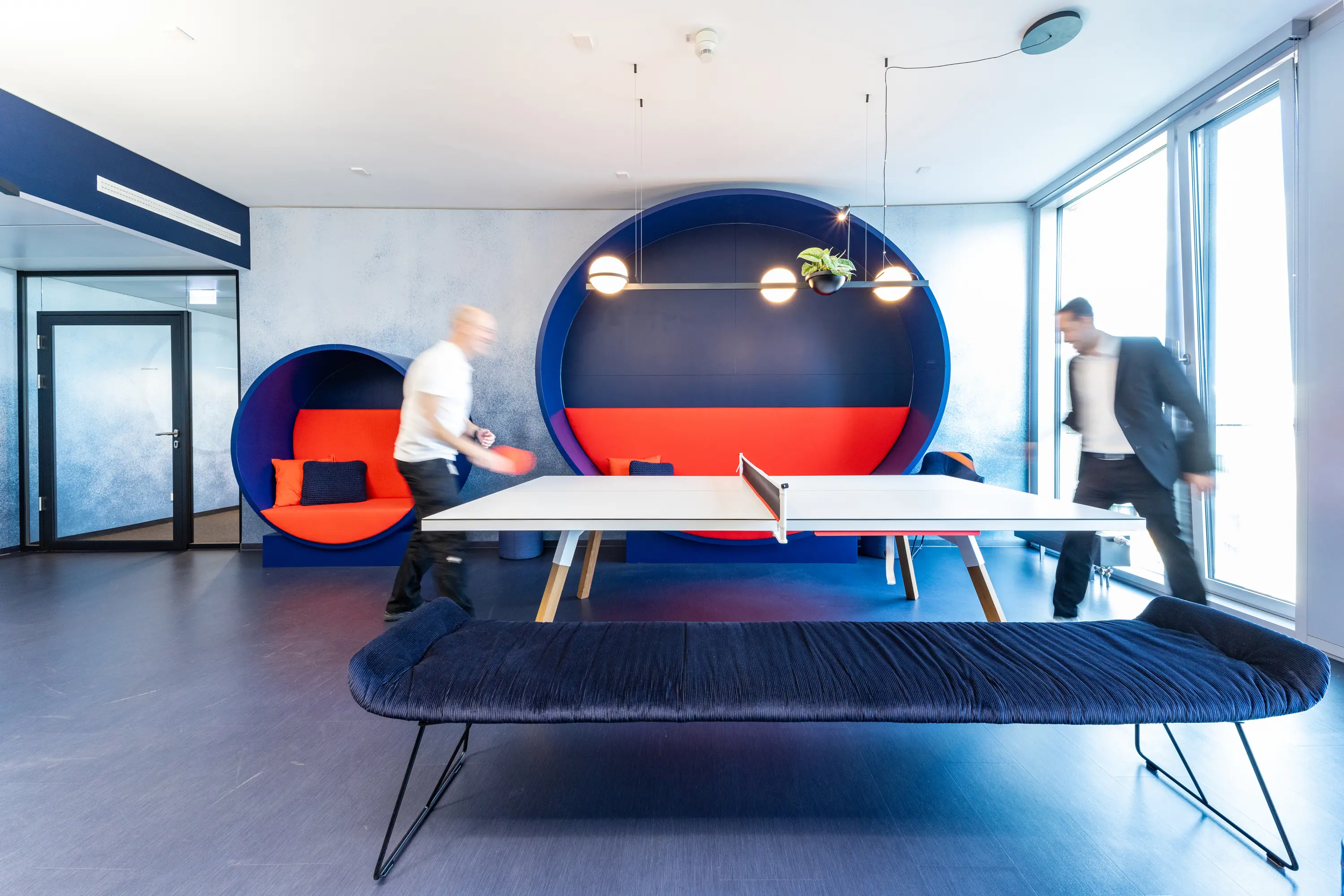 Aus einer Büroetage mit langem Flur und Einzelbüros entstand eine offene, inspirierende New-Work-Fläche mit vielen Ruhe und Kommunikationszonen. Klare Gestaltung, akustische Strukturierung, natürliche Materialien und CI-bezogene Details verbinden Funktion und Identität. Pflanz- und Wasserwände zonieren und fördern Wohlbefinden, nachhaltige Möbel und digitale Prozesse sichern Zukunftsfähigkeit. Ein Büro, das Wandel, Design und Verantwortung vereint.