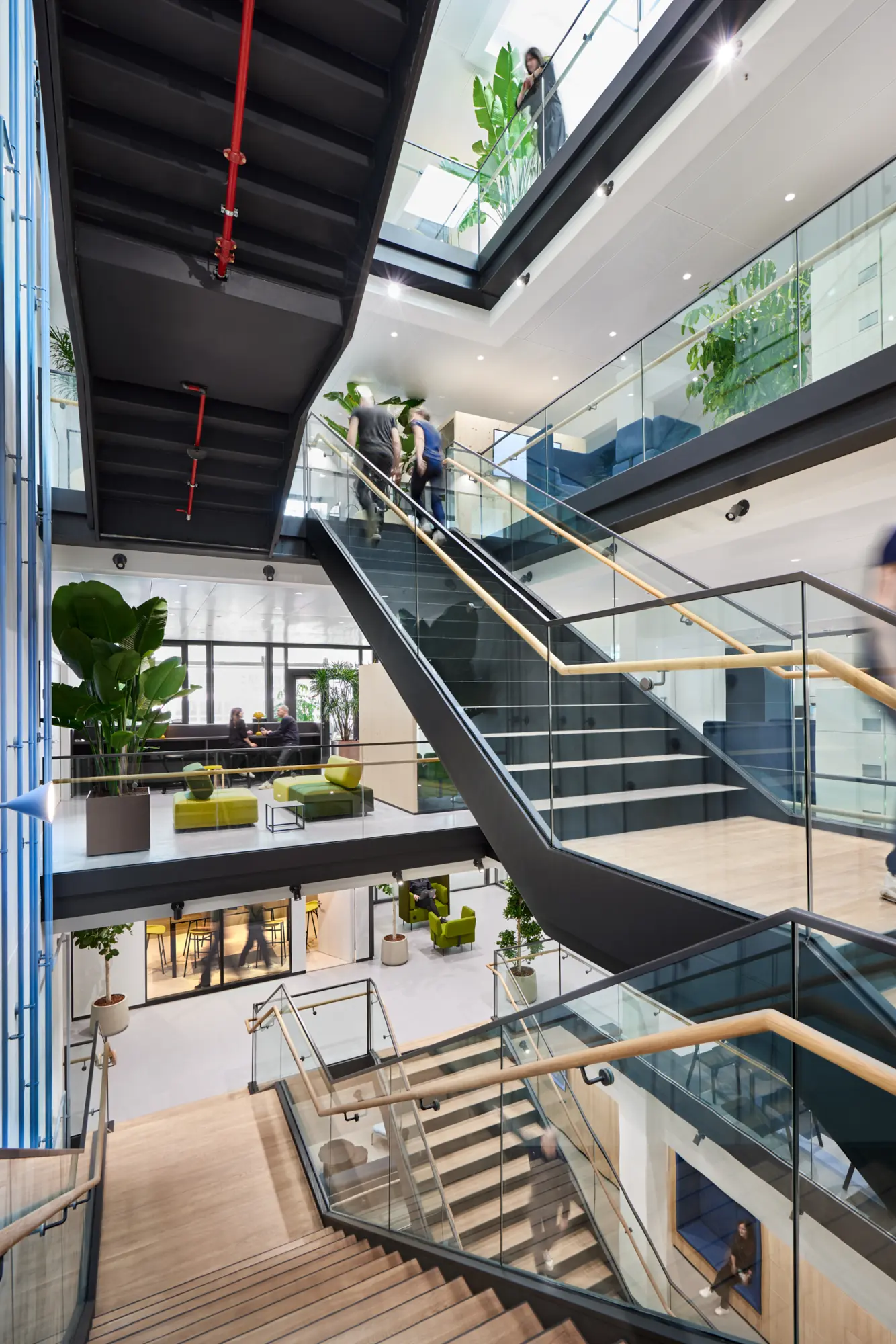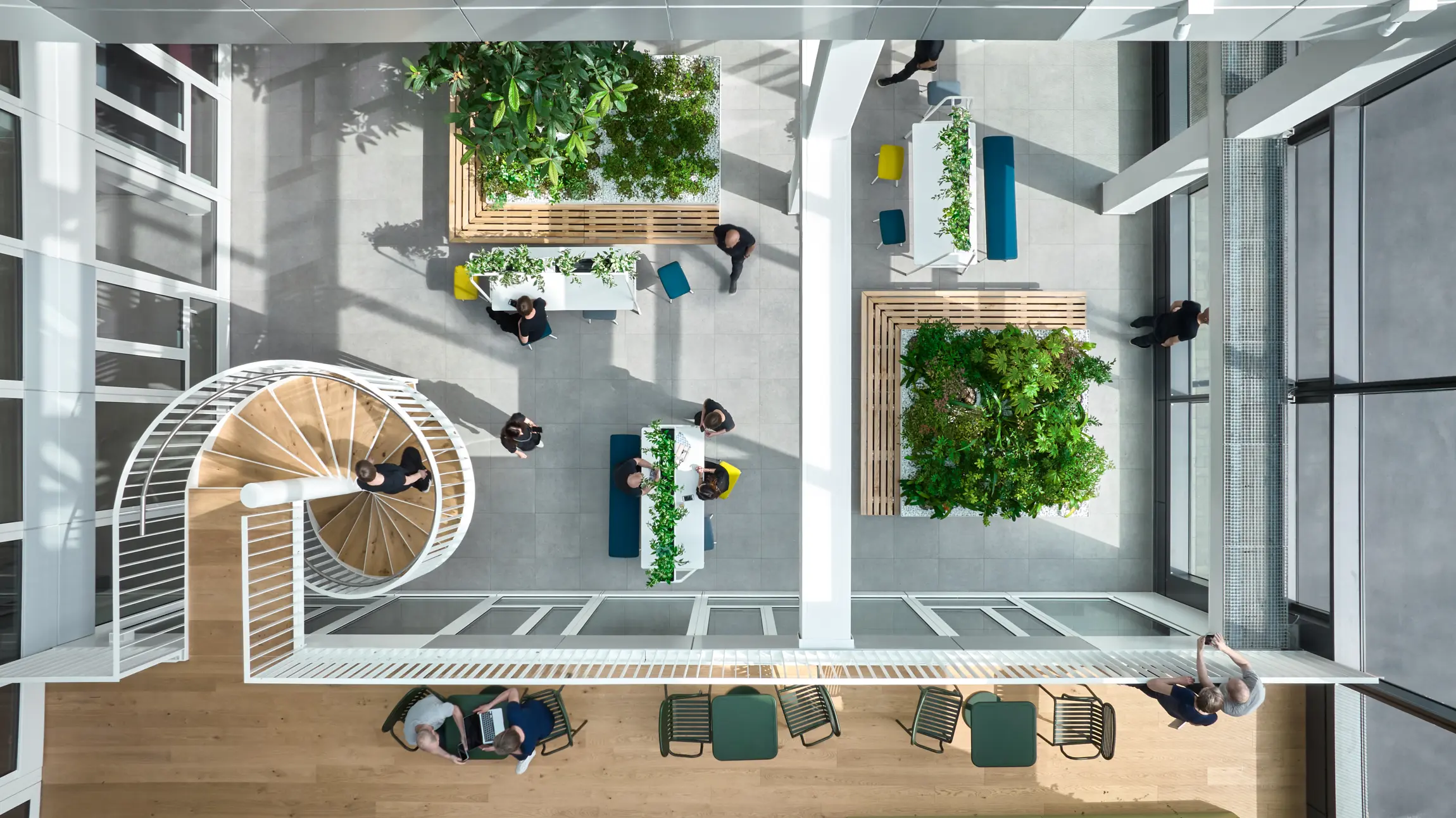 Weg von „behördlicher Anmutung“ – hin zu einer offen gelebten Struktur: 1.450 Vattenfall-Mitarbeitende in einem neuen gemeinsamen Arbeitsumfeld zusammenzuführen, ist mehr als ein Umzug. Es ist Kulturwandel. An einem Ort, der Transformation nicht nur räumlich abbildet, sondern zur aktiven Mitgestaltung einlädt. Elbside erweitert die Idee des Arbeitens um den Begriff der Relationalität – und denkt Räume nicht in Geschossen, sondern in Beziehungen: als zirkulierendes, organisch verwobenes Beziehungsnetz mit der Lebensqualität einer dörflichen Gemeinschaft inmitten der Stadt.