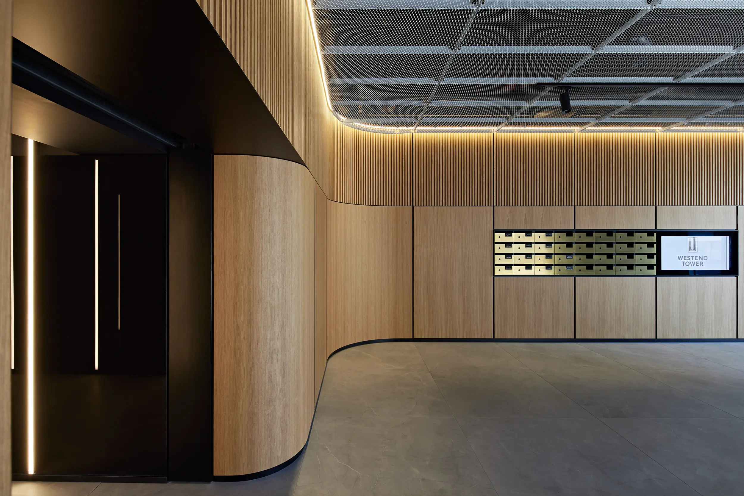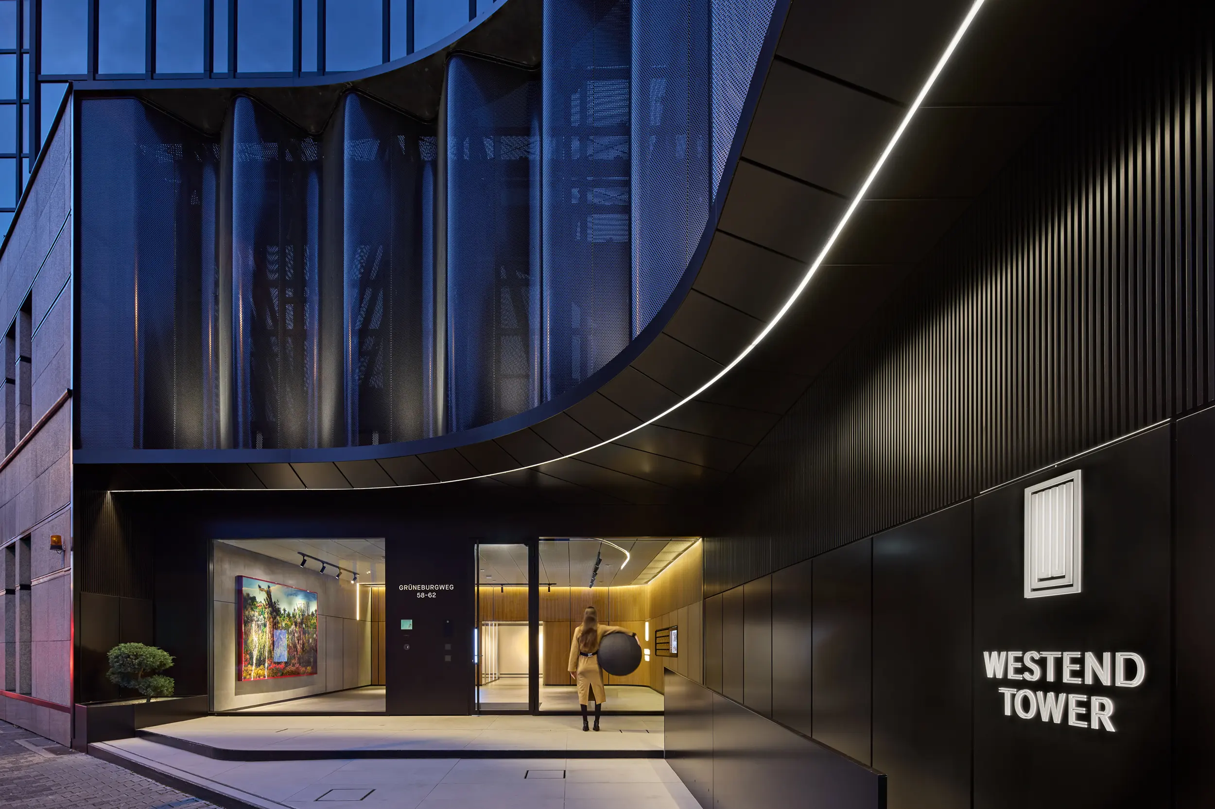 Der Westend Tower verkörpert ein modernes Bürokonzept, das Funktionalität, Stil, Design und urbanes Lebensgefühl vereint. Just Architekten haben die Herausforderung kleiner Flächen als kreative Chance genutzt und die Idee des Boutiquehotels in die Welt der Offices transportiert: klein und fein. Ein durchgängiges Corporate Interior Design, höchste Qualität und Flexibilität positionieren das Kleinhochhaus als eigenständige Typologie im urbanen Raum.