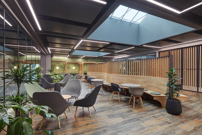 Die neue, konsequent nach den Prinzipien des New Work gestaltete Arbeitswelt von »Eisen Fischer« lässt eine angenehme und zeitgemäße Arbeitsatmosphäre erwarten. Wie das Designkonzept dabei den ländlichen Charakter seiner Umgebung aufgreift und stilsicher in das modern und hochwertig wirkende Ambiente integriert, ist sympathisch und fördert die Identifikation der Mitarbeitenden mit dem in der Region verankerten Unternehmen.