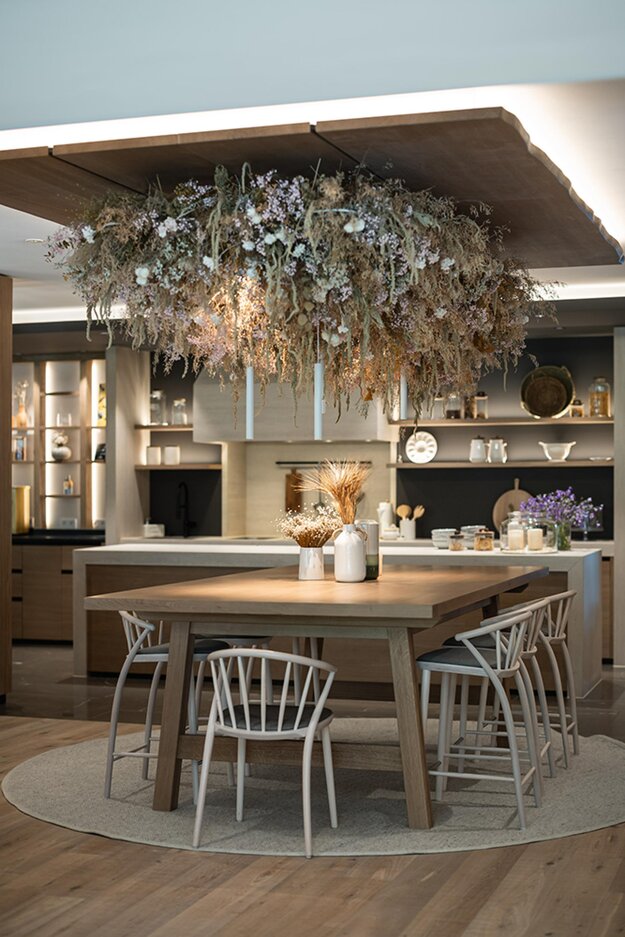 Vegi.Table. Das innovative Pop-Up-Restaurant, im Hotel Petrus in Reischach am Kronplatz in Südtirol, mit eigenem angeschlossenen Bio-Gemüsehof Lechnerhof. Das Pop-Up-Restaurant Vegi.Table ist nur zur Erntezeit – von Juni bis Oktober – geöffnet und serviert innovative Gerichte aus frischem Gemüse aus eigenem Anbau. Das Interieur ist vom Garten inspiriert: Trockenblumen aus eigenem Anbau zieren die Decke, während beleuchtete Regale mit eingelegtem Gemüse ein einzigartiges visuelles Erlebnis schaffen, das kulinarische und ästhetische Qualitäten verbindet.